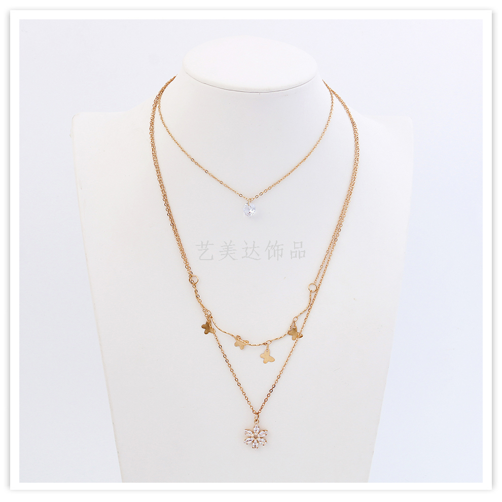 special-interest design twin double-layer pendant necklace 2025 new women's personalized hip hop butterfly flower sweater chain 中文版