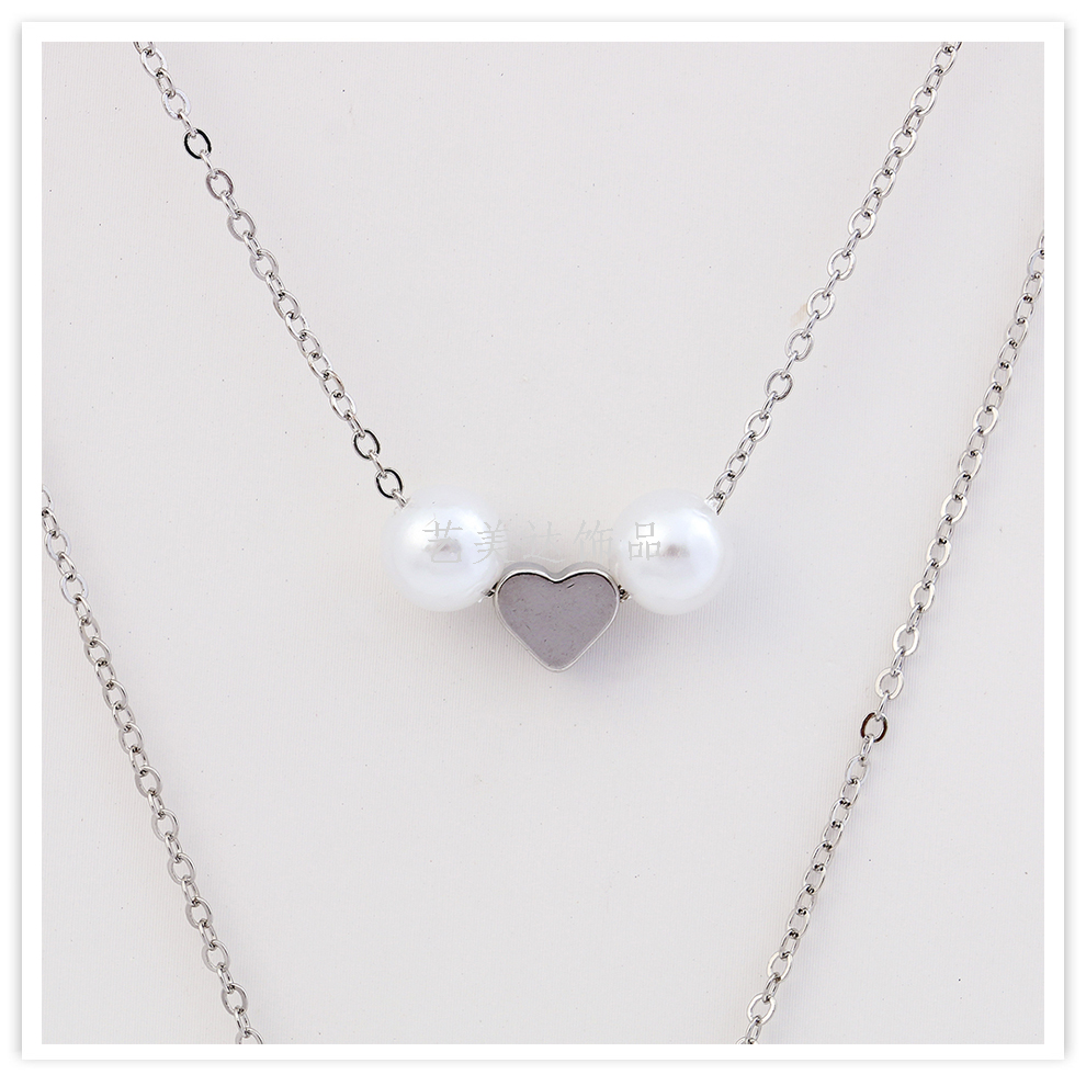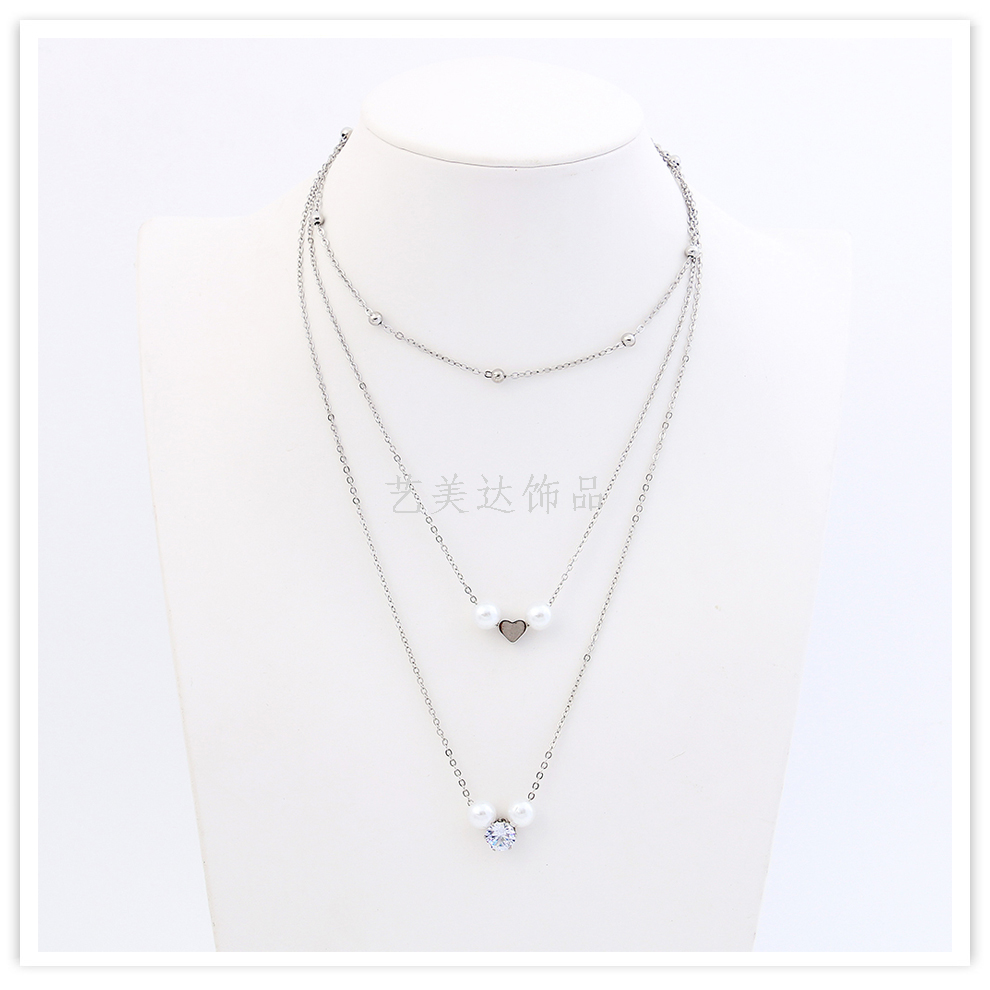 fashion brand necklace for women ins cold wind net red accessories multi-layer twin sweater chain pearl heart zircon silver 中文版