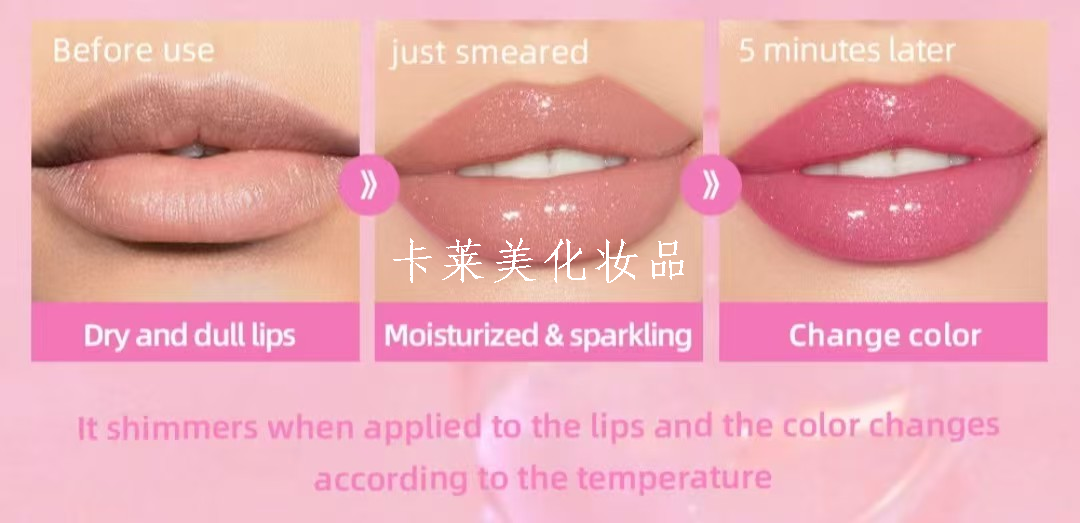 cross-border hot [cute and funny color changing lip gloss] it is smooth after a touch, and it changes color with temperature! moisturizing lips not oily 中文版