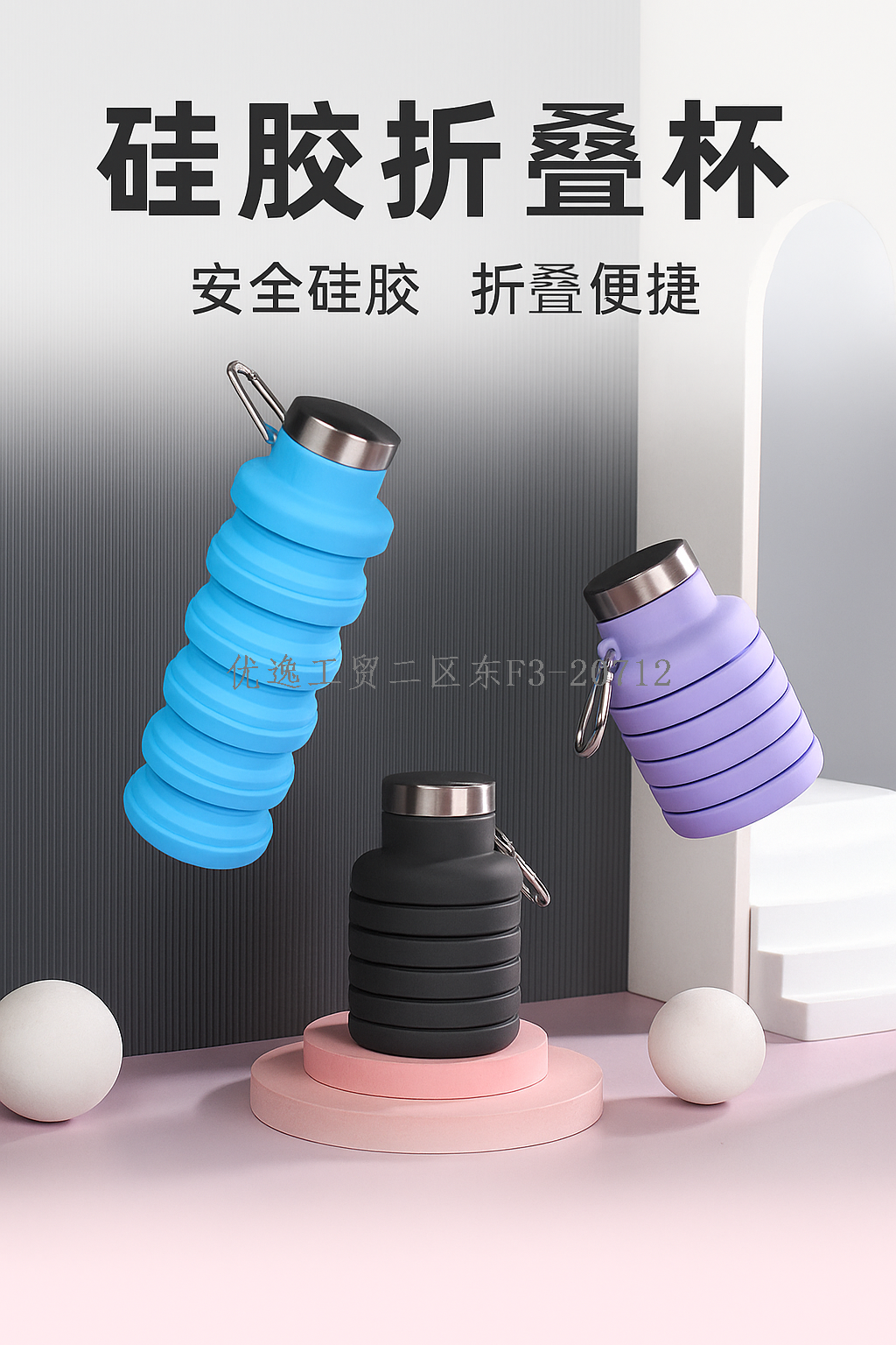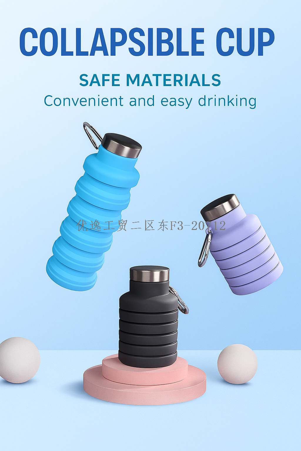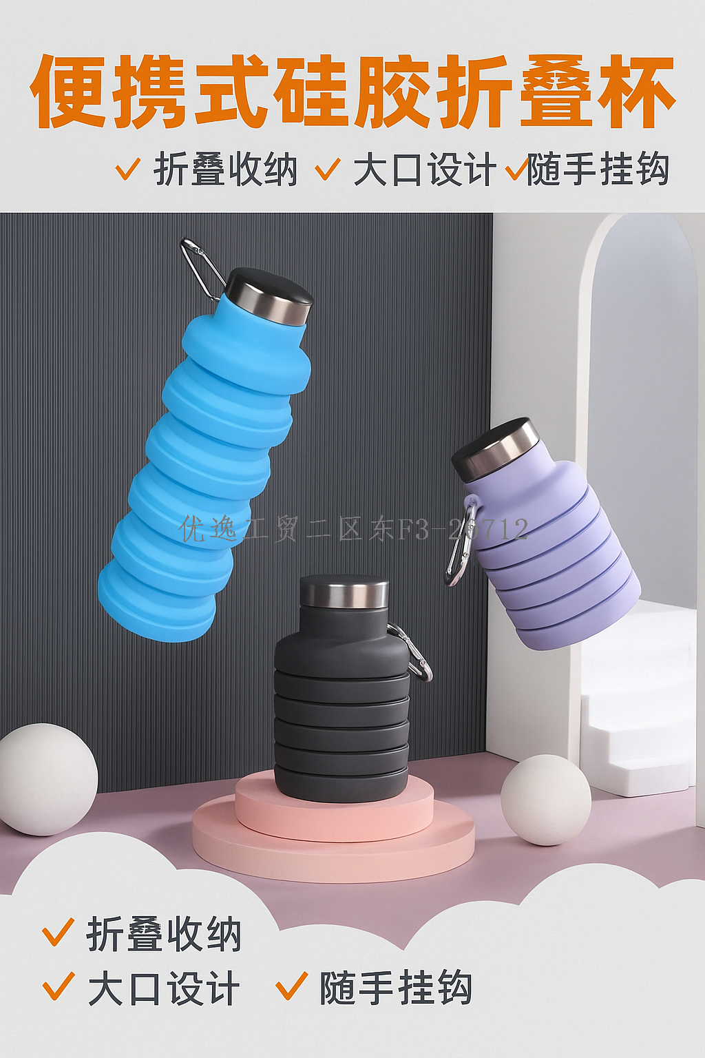 [source manufacturer] portable travel water cup steel cover silicone folding cups with backpack buckle leak-proof design 中文版