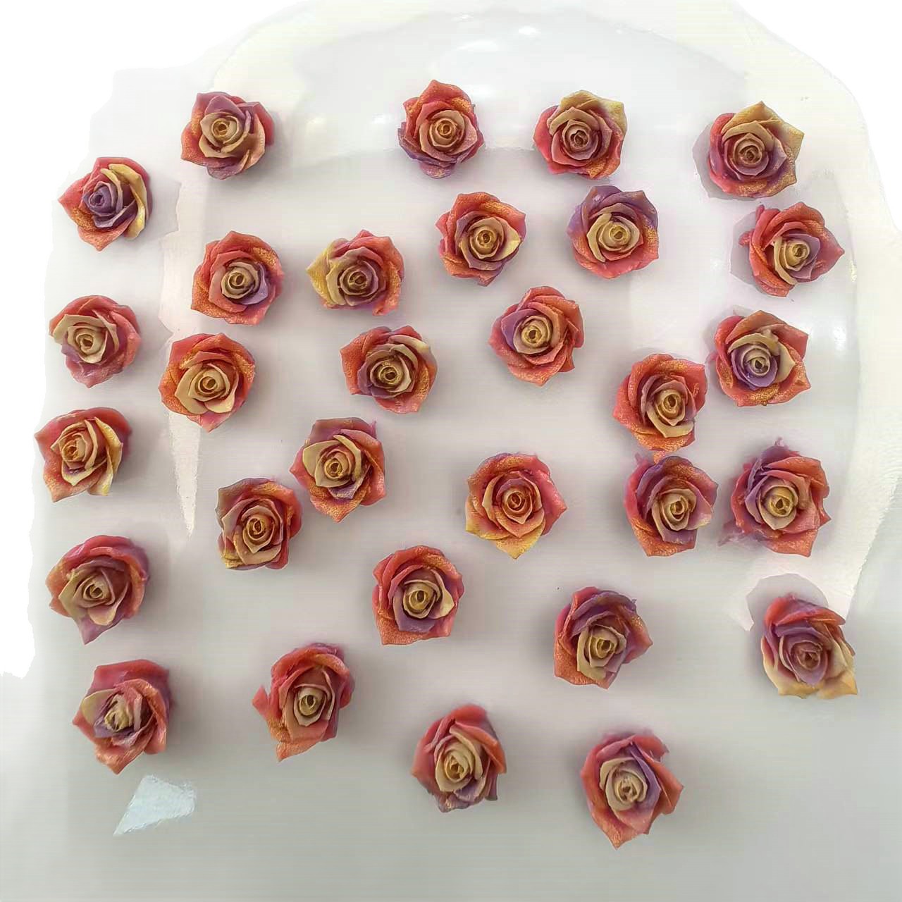 Use silicone molds to mass-produce resin flower accessories (such as five-petal flowers, roses, etc.), which can be paired with iridescent powder or gradient dyeing.