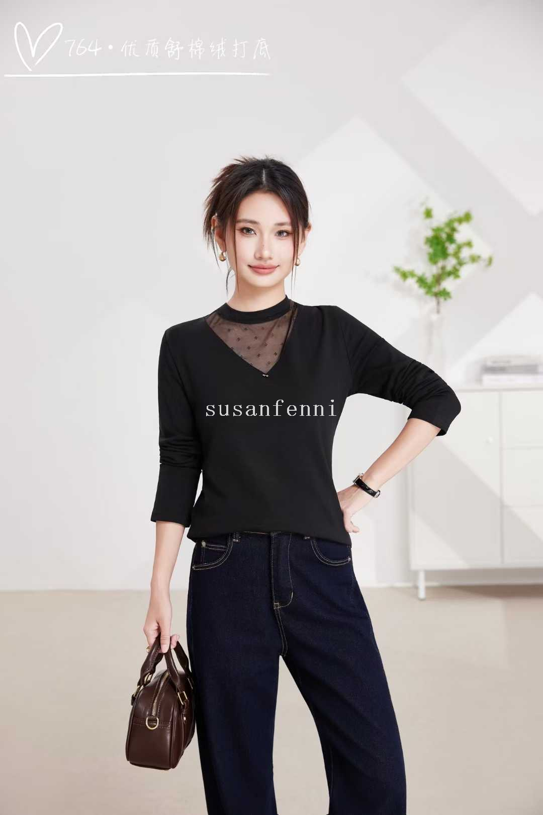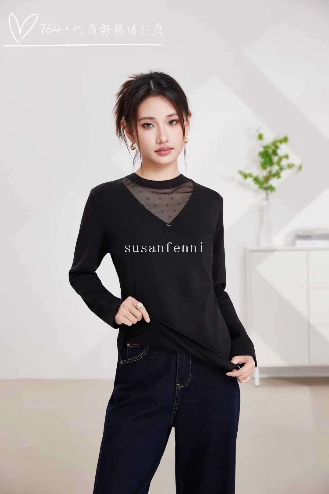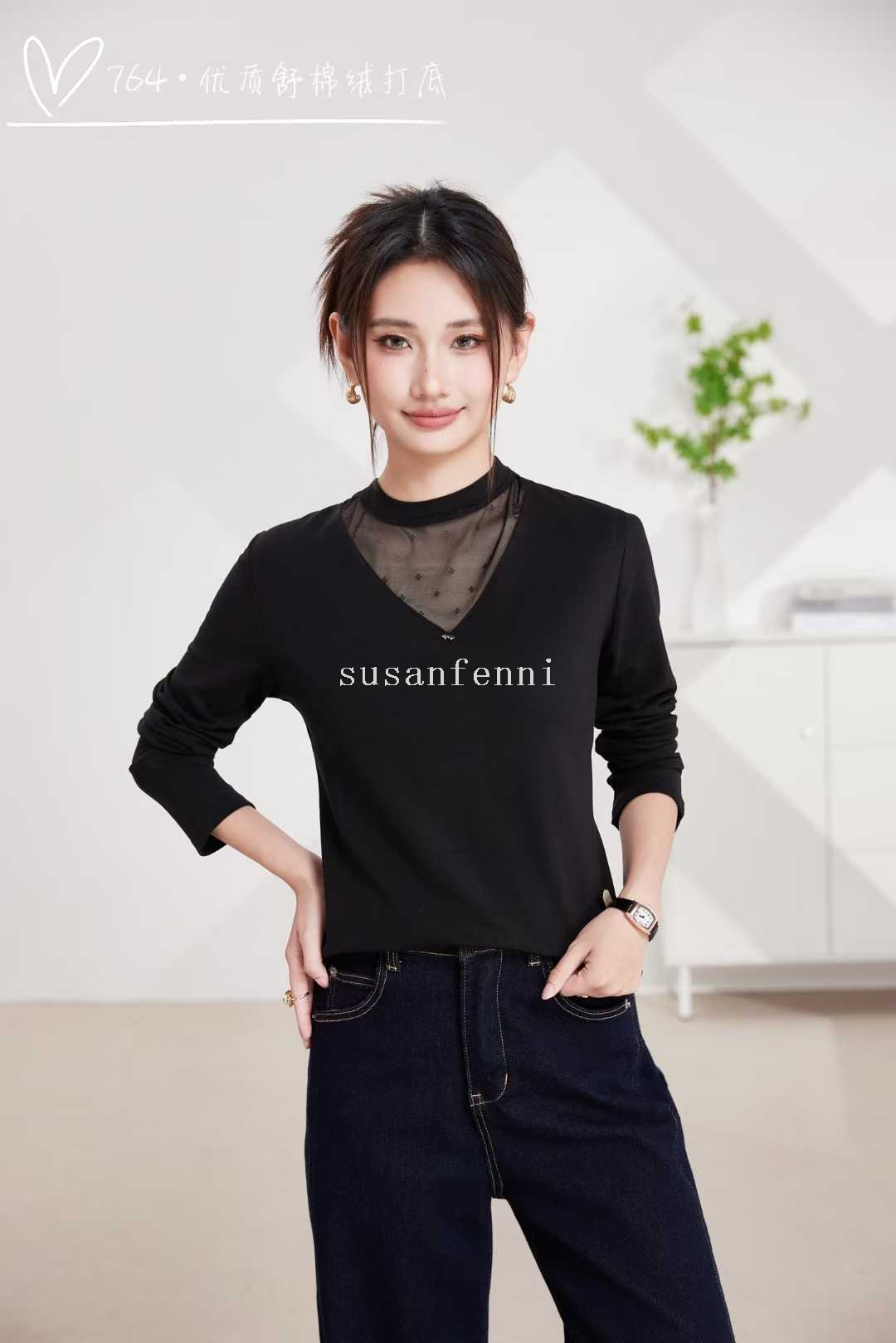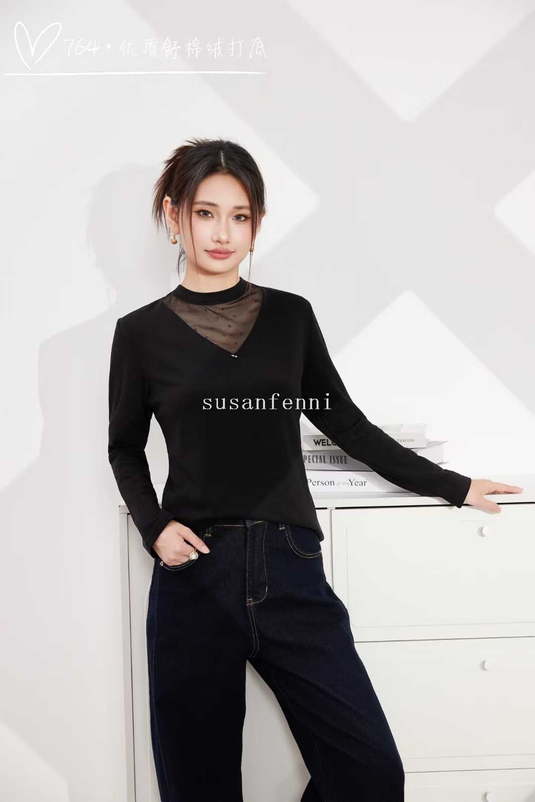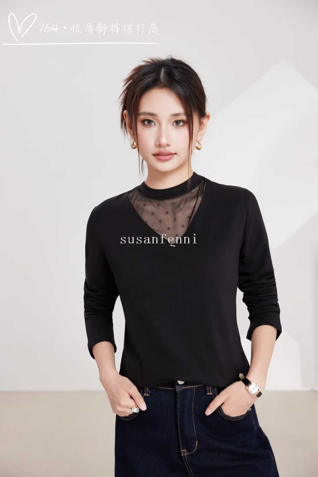 undershirt autumn and winter round neck new lace edge undershirt women's inner wear stretch all-matching t-shirt mesh top women 中文版