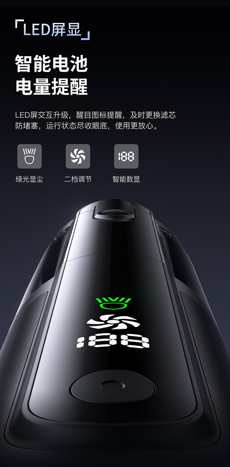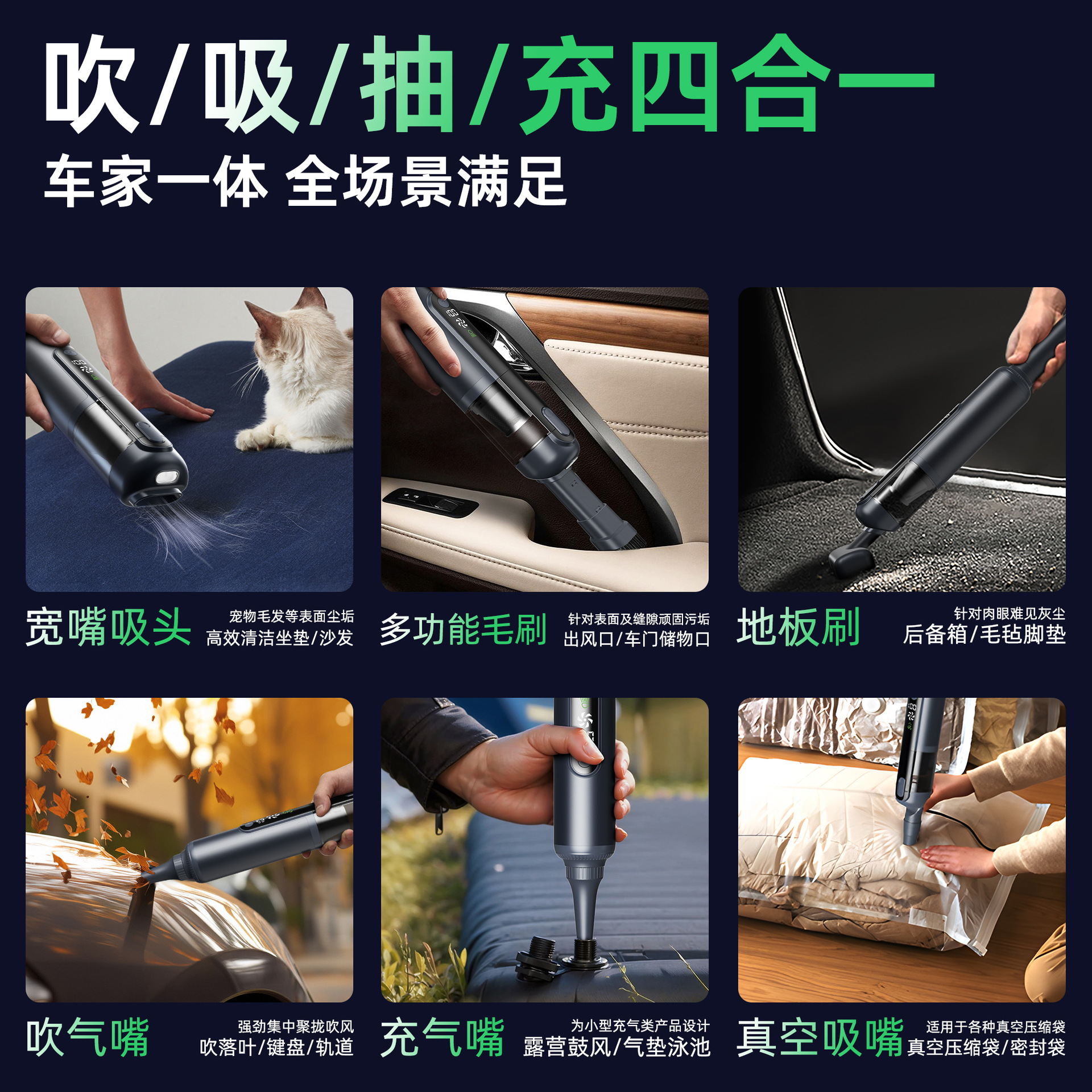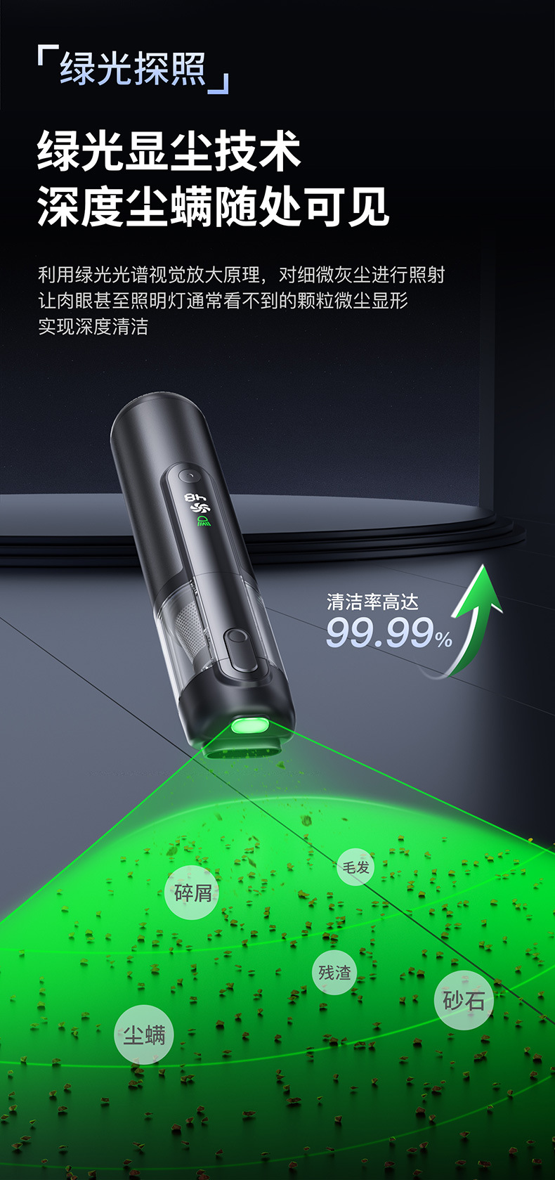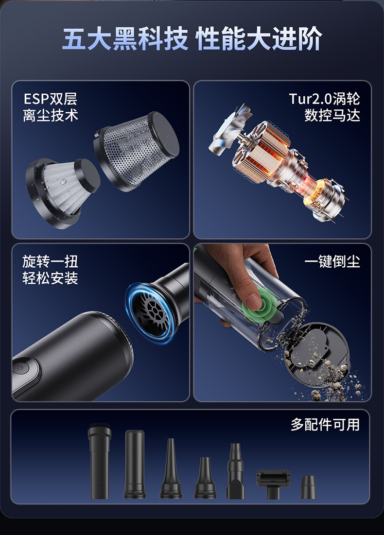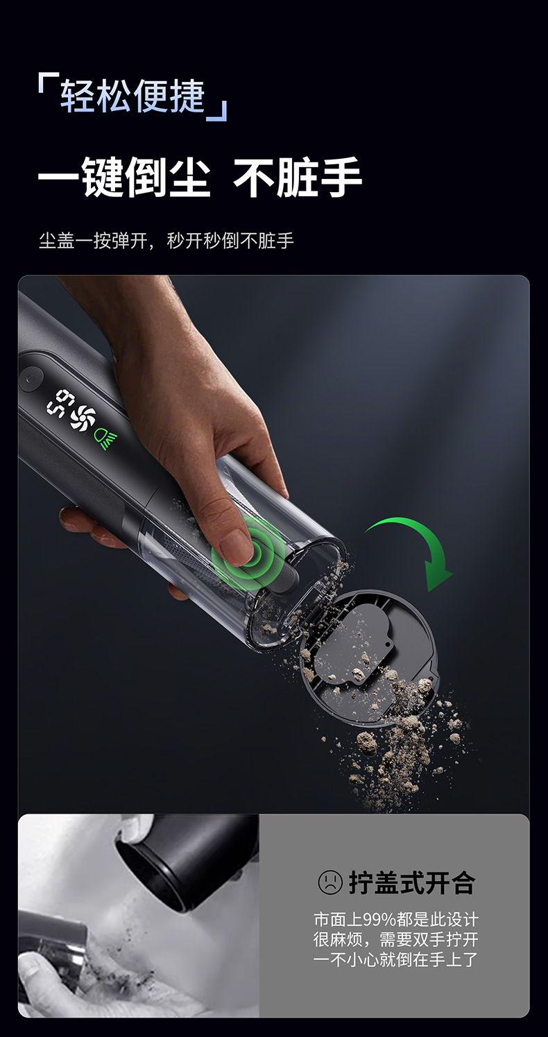 textured black [green light dust mite +16000 + pa suction] suction + blowing + pumping + charging + lighting