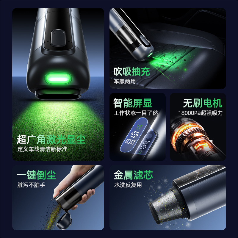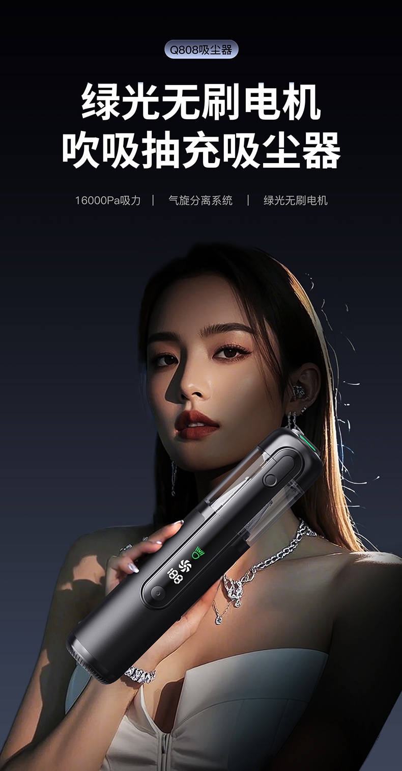 high grade gray [green light dust mite +16000 + pa suction] suction + blowing + pumping + charging + lighting