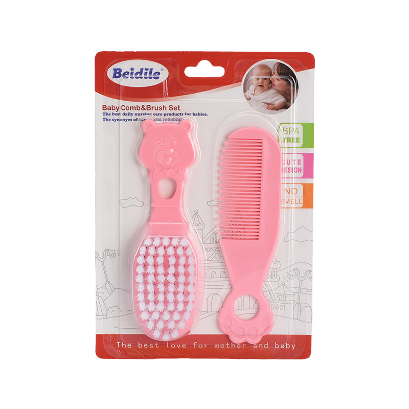 little bear pink comb brush-suction card