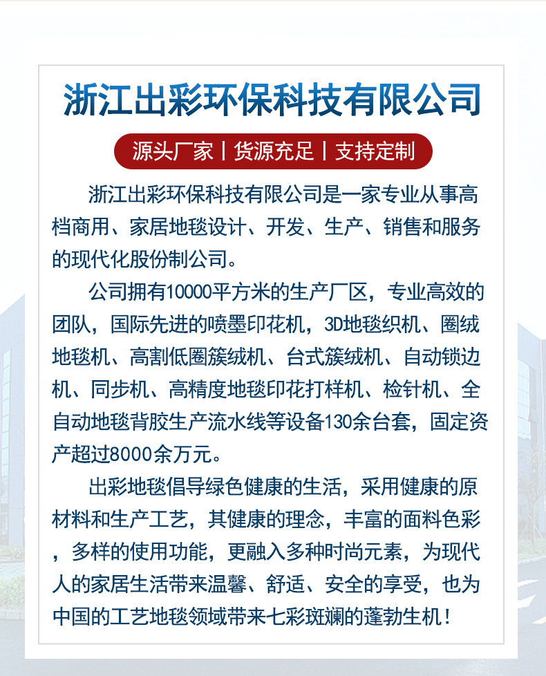 We mainly produce: flannel floor mats, linen floor mats, kitchen mats, bathroom mats, ultra-fine fiber floor mats, and other home products.
