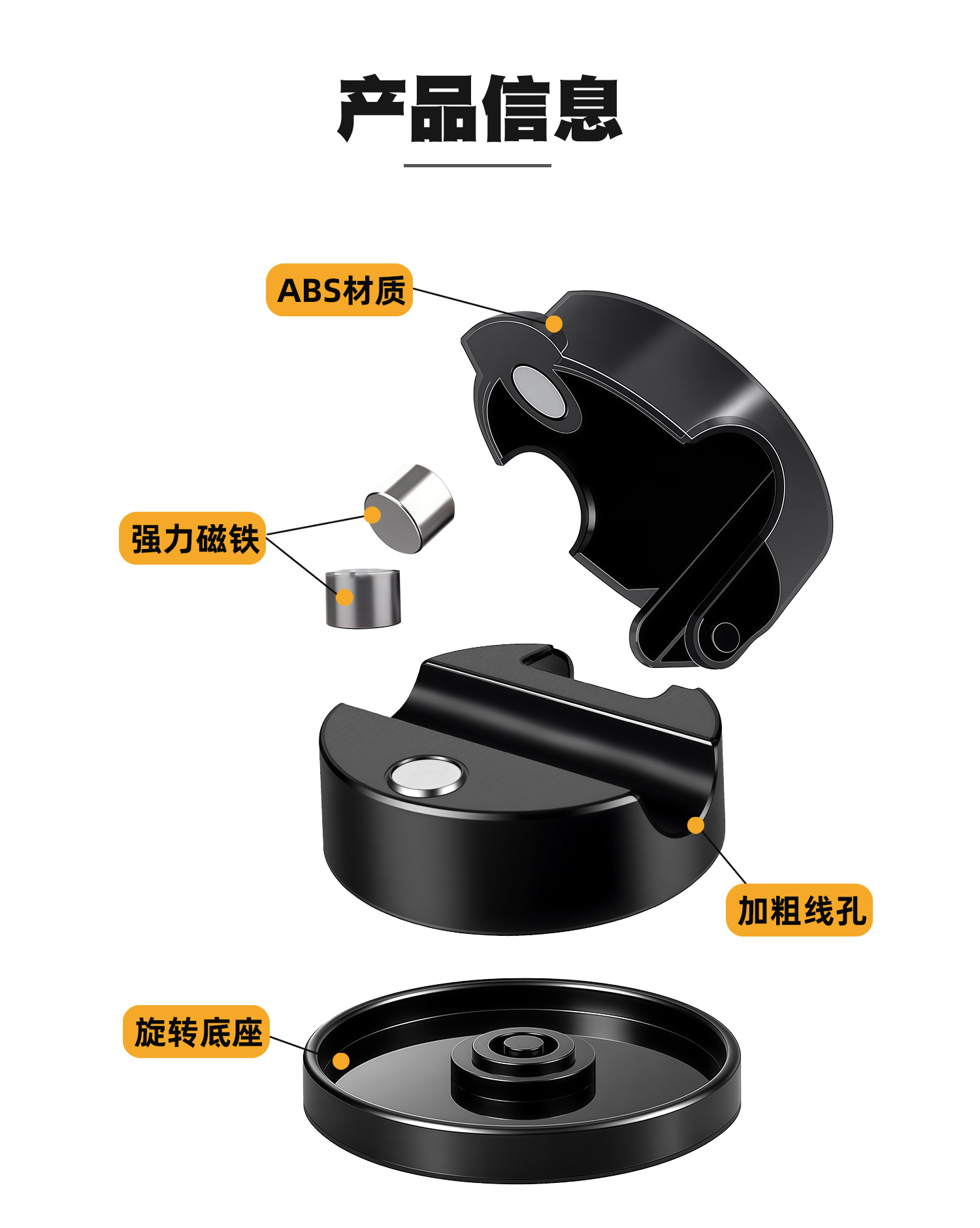 360 degrees rotating 6 pieces a pack of black