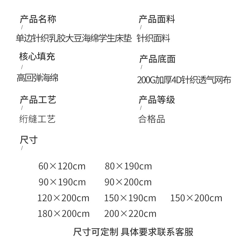 | 180x200cm thick about 5cm | CN¥ 182.5 | 99999 bed available |