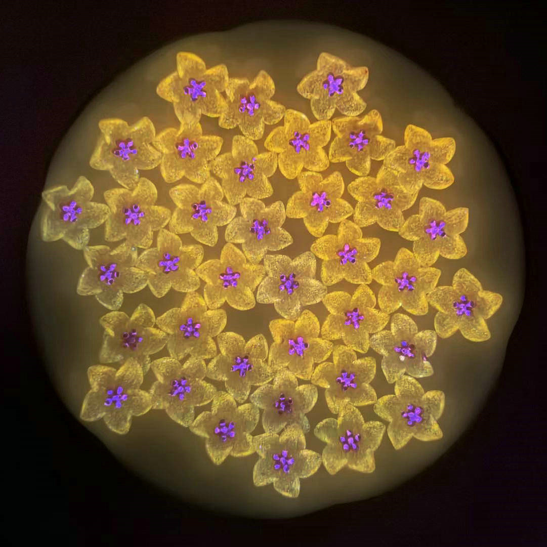 Black Technology Elements: Thermo-chromic Resin Flowers (Change Color with Heat), Glowing Flowers at Night, etc.