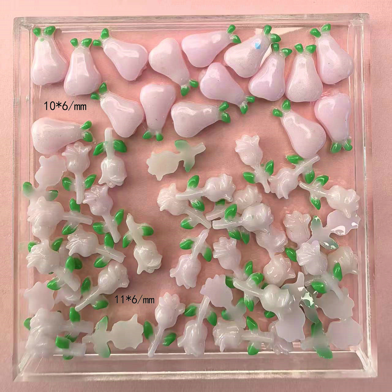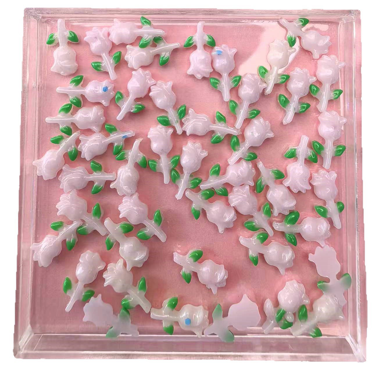 Use silicone molds to mass-produce resin flower accessories (such as five-petal flowers, roses, etc.), which can be paired with iridescent powder or gradient dyeing.