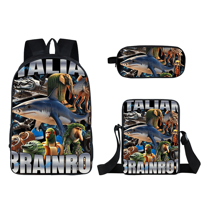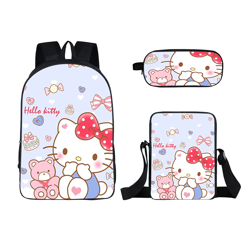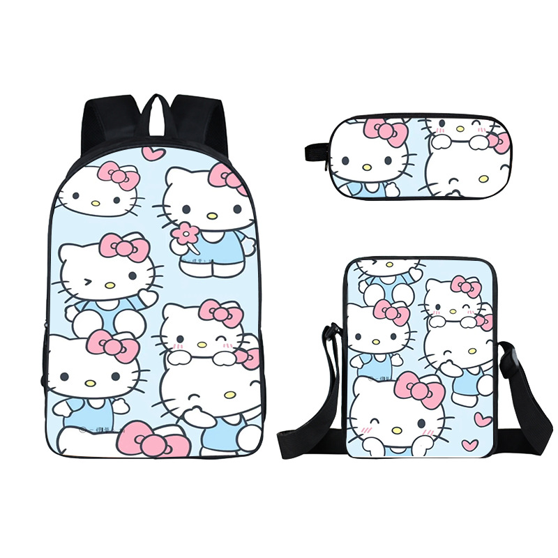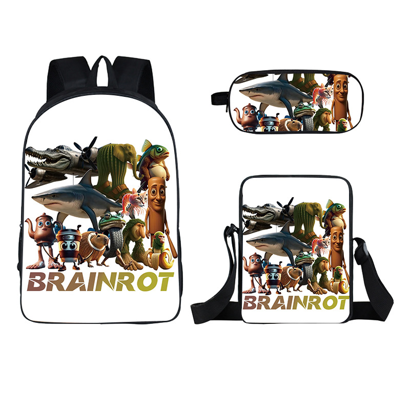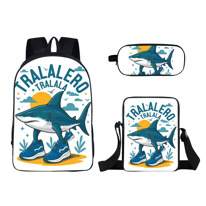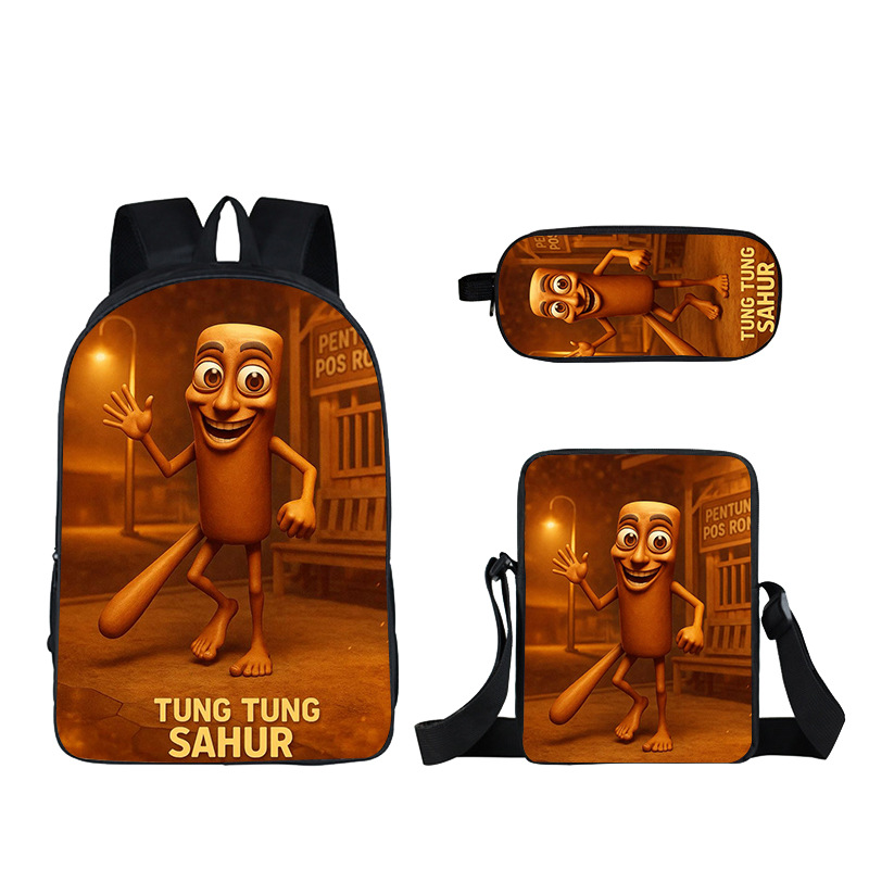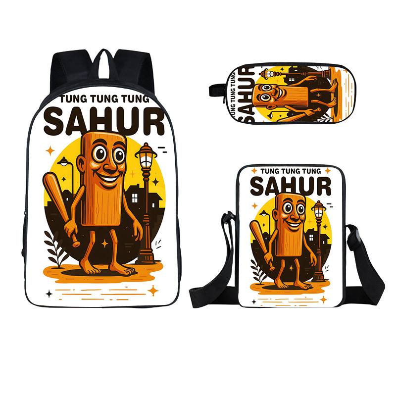 Cross-border new wooden stick person Shanhaijing children's schoolbag, elementary school student stationery box set of three cute girls to reduce the burden of backpacks hot