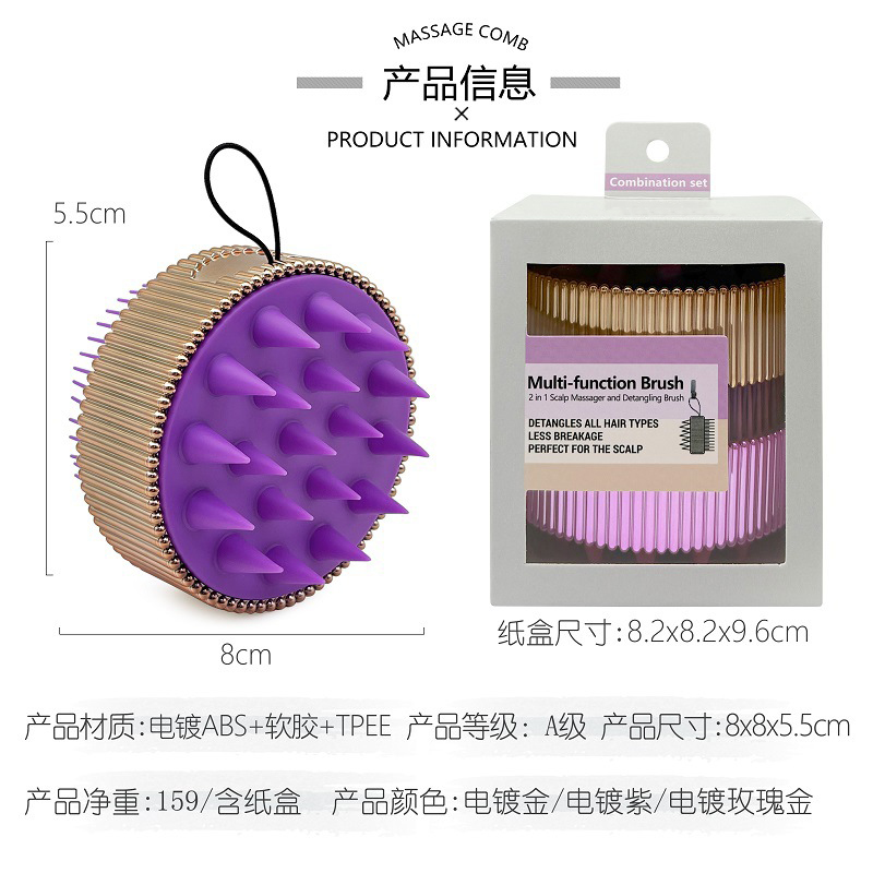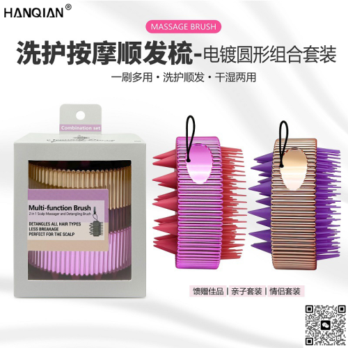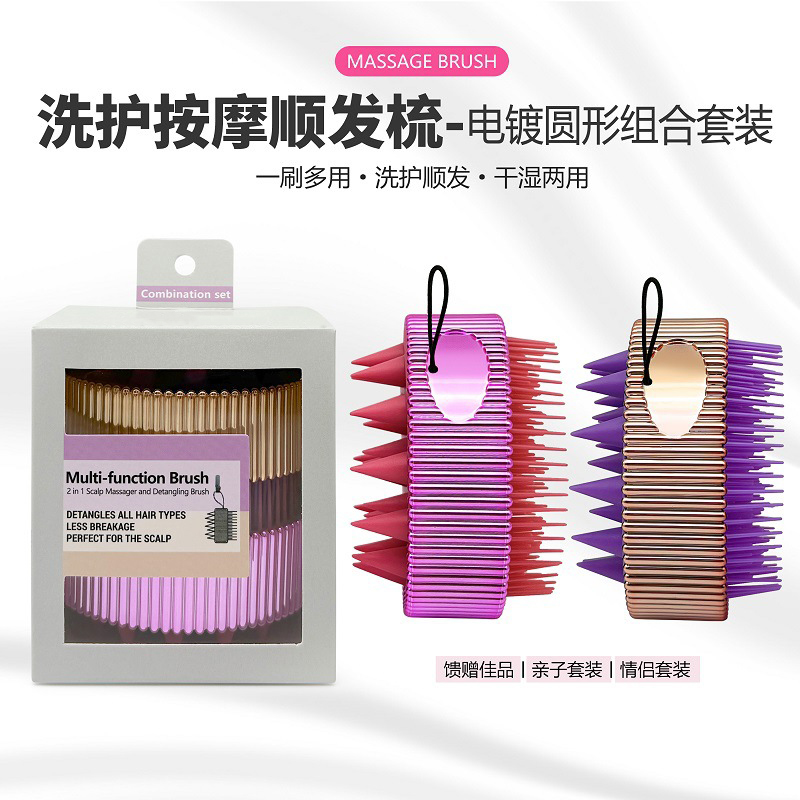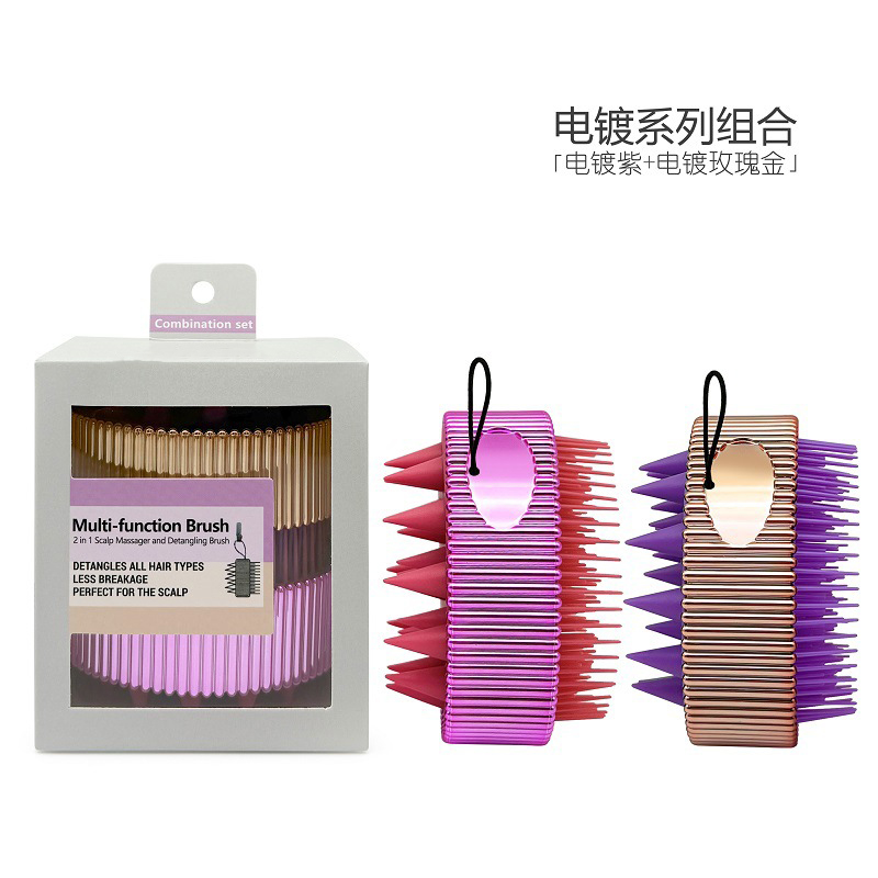 electroplating double-sided cleaning massage scalp soft glue shampoo brush wet and dry dual-use shampoo hair hairdressing comb gift set 中文版
