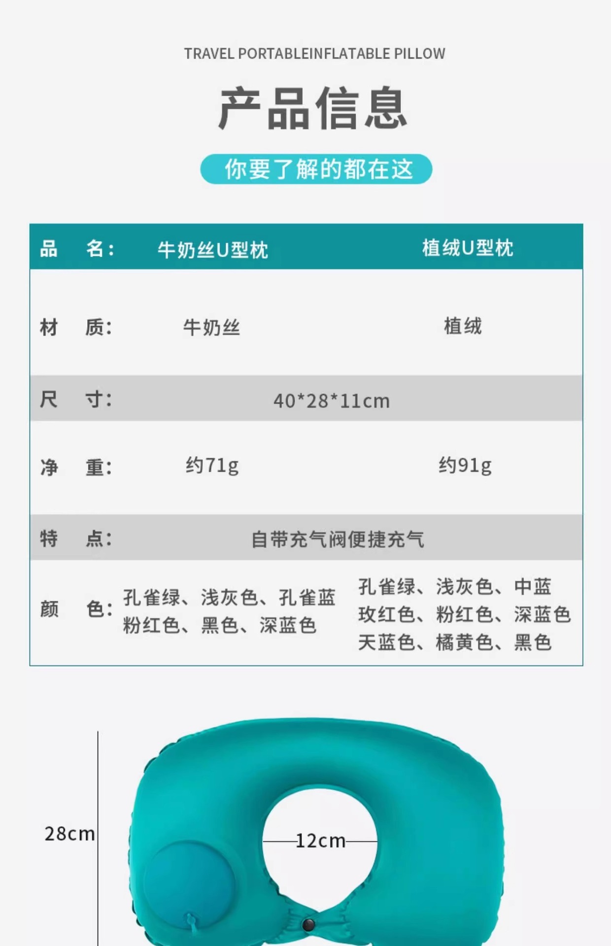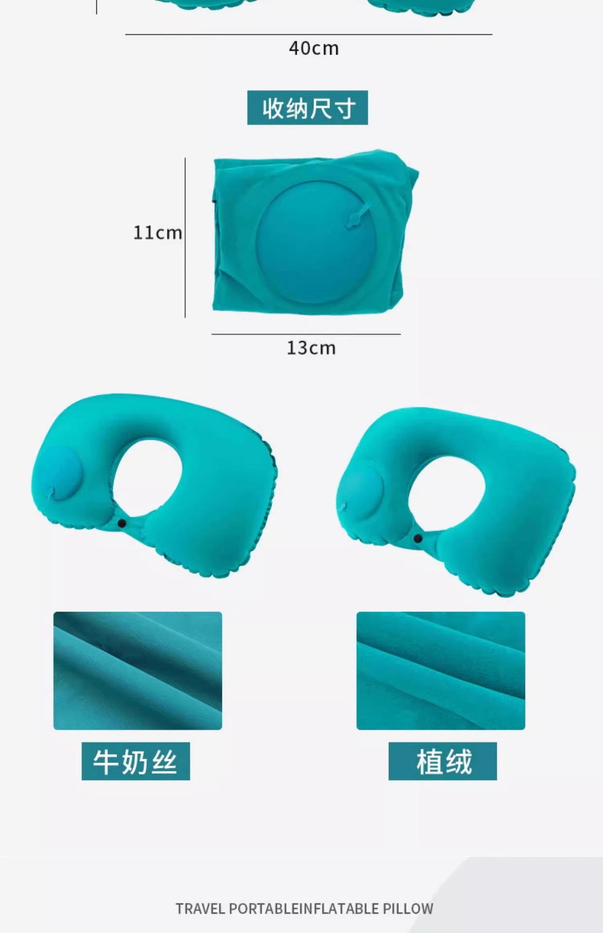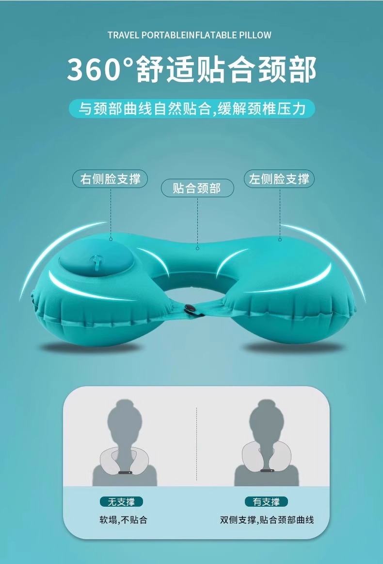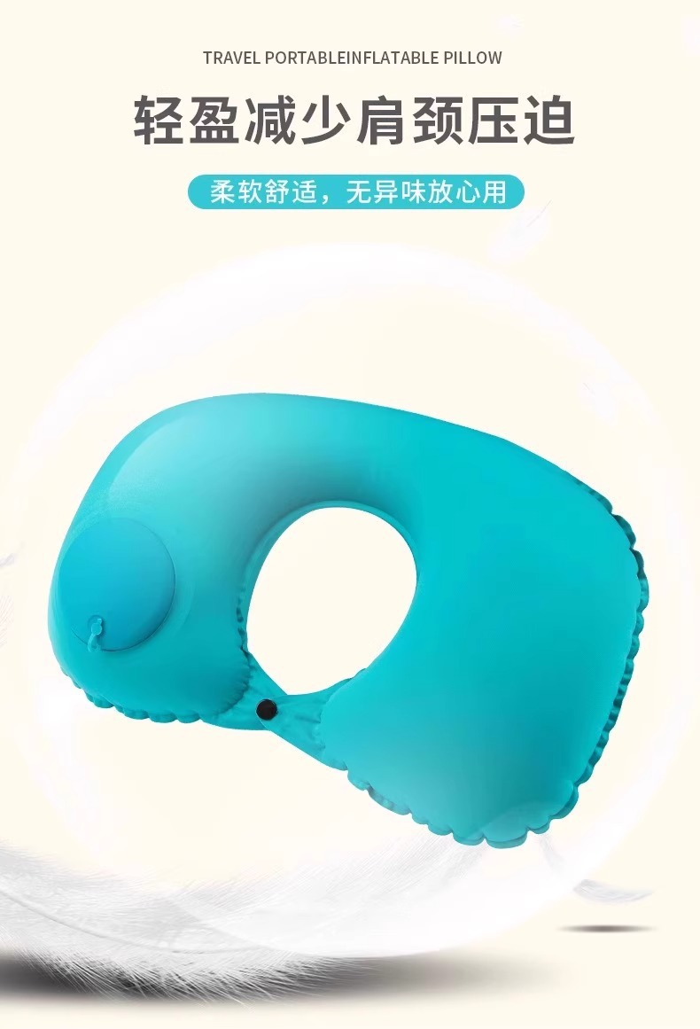 flocking u-shape pillow [sky blue 1 pack] press quick charge folding storage