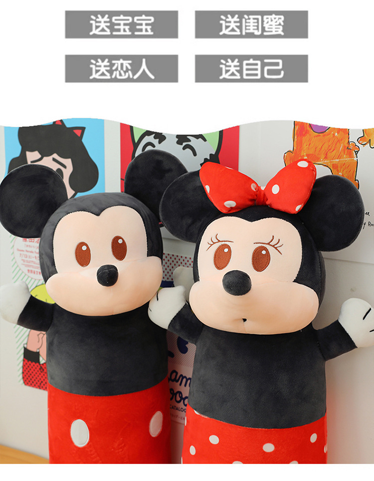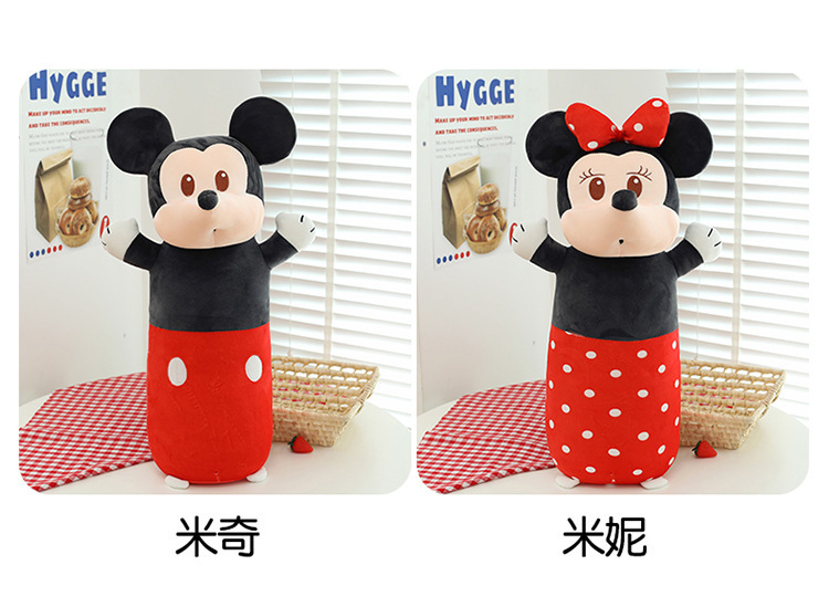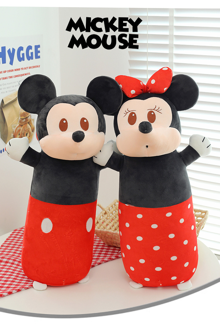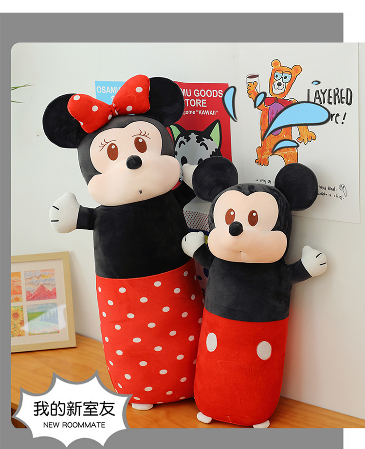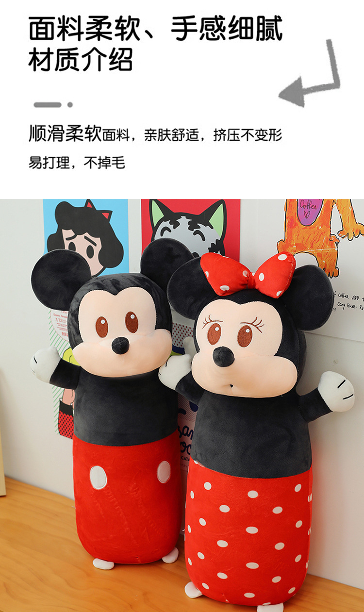 cute cylindrical mickey plush toy minnie long bed pillow mickey mouse doll cartoon sleeping ragdoll 中文版
