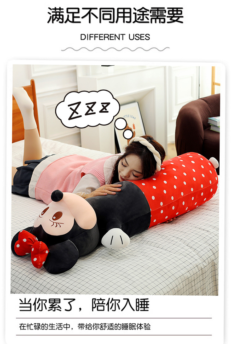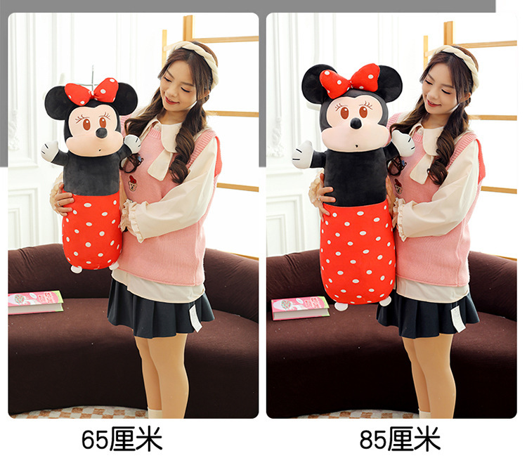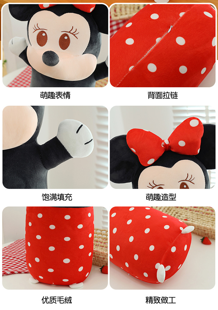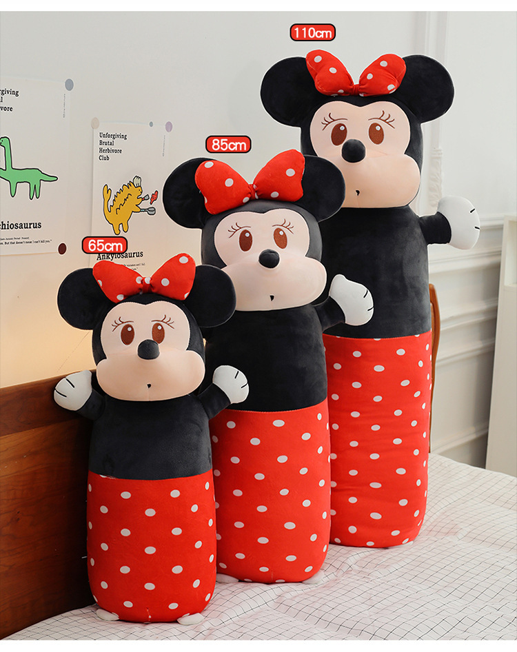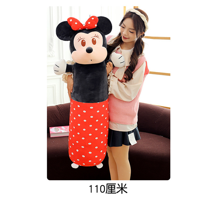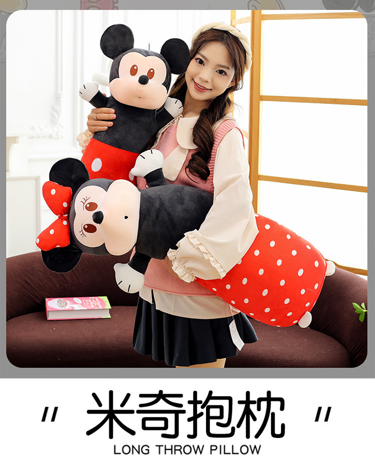 cute cylindrical mickey plush toy minnie long bed pillow mickey mouse doll cartoon sleeping ragdoll 中文版