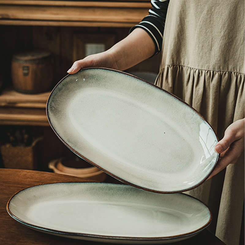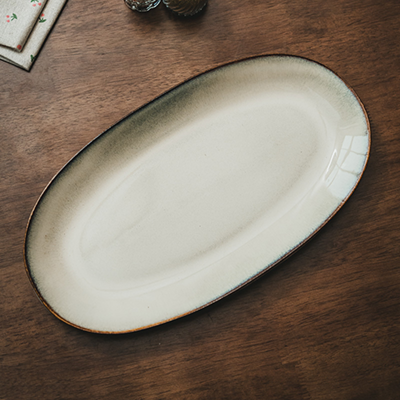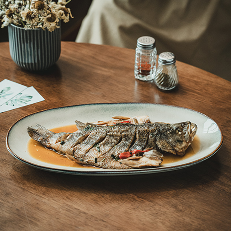 jingchu-oval fish dish gray 13-inch (slightly flaw)