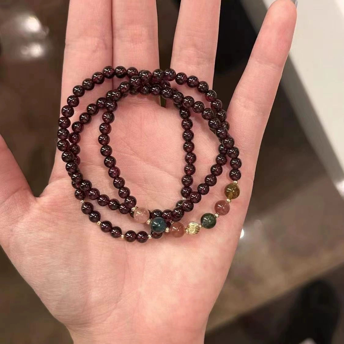 pomegranate red multi-circle beaded bracelet
