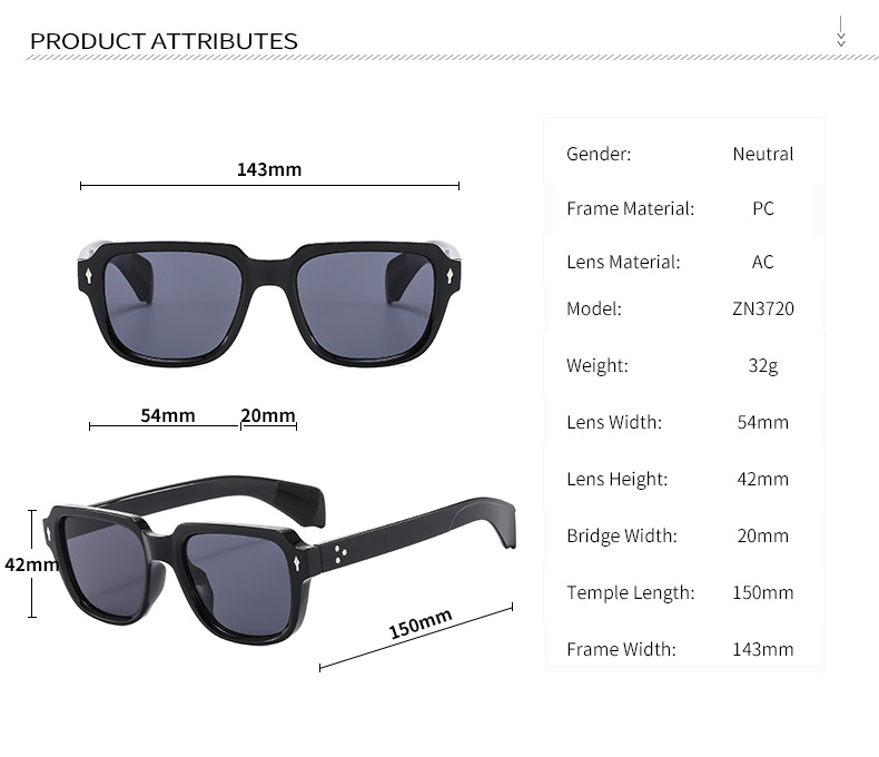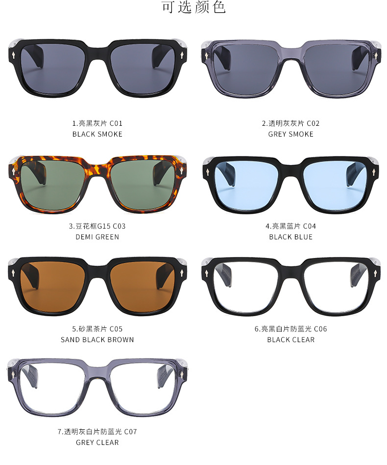 cross-mirror new fashion retro square frame men's and women's sunglasses beige chic nail sunglasses fashion wear outdoor uv protection 中文版