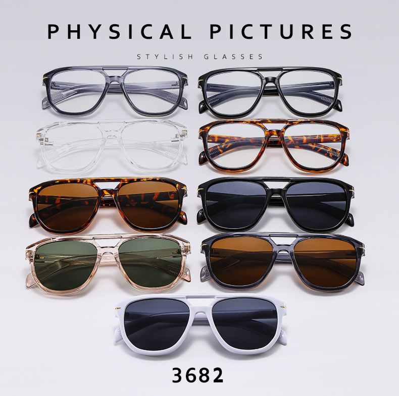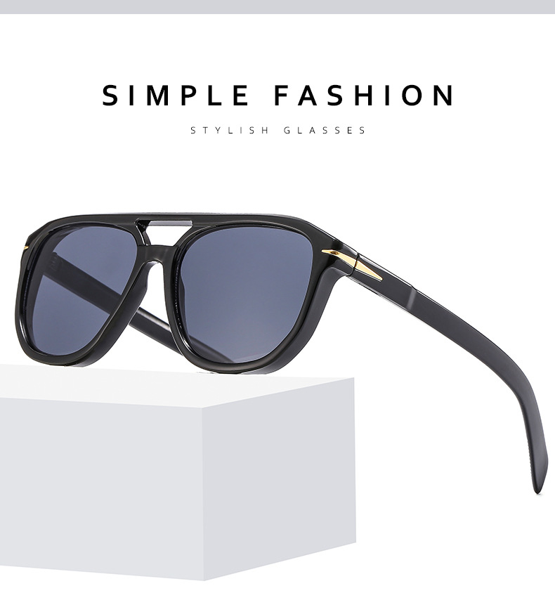 new double beam cross-border sunglasses european and american fashion sunglasses men's fashionable ins plain glasses sunglasses aviator sunglasses 中文版