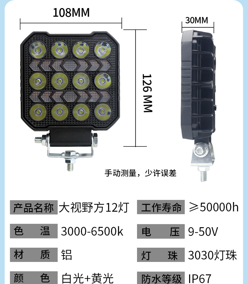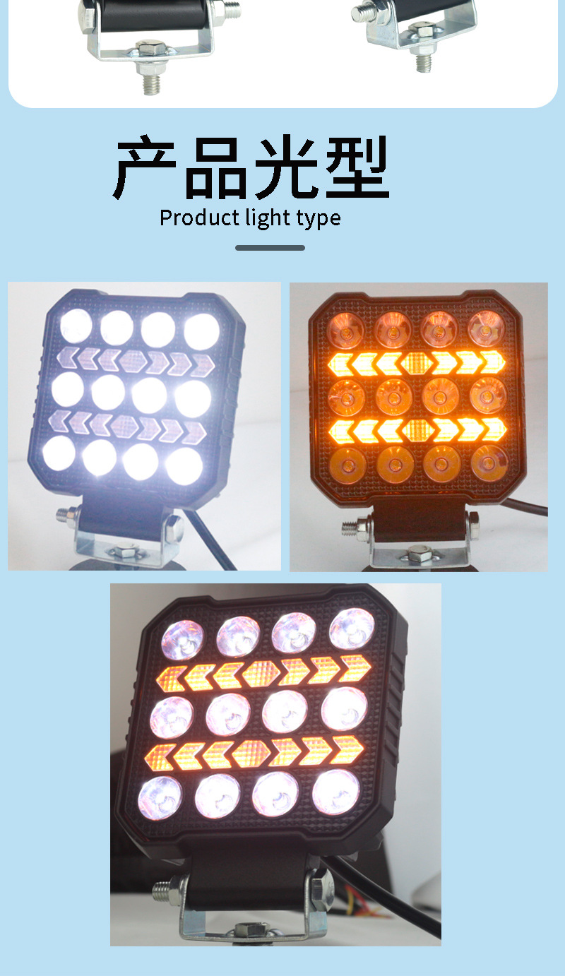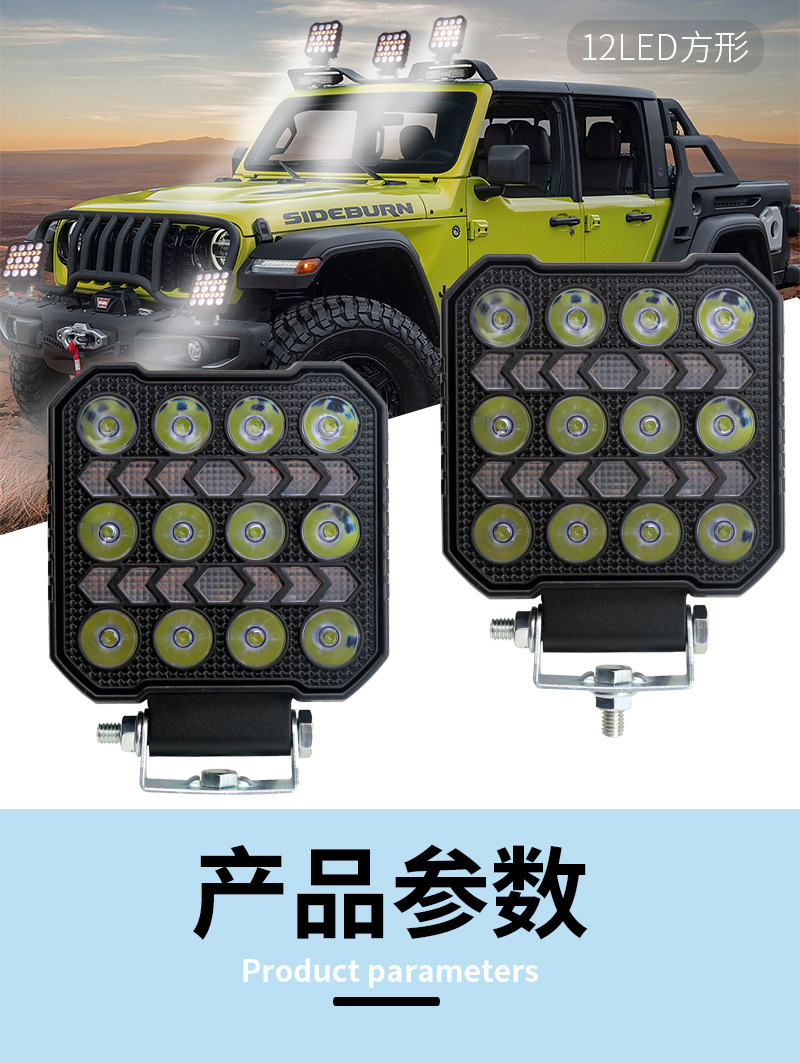off-road vehicle led spotlight 4-inch square work light yellow daytime running lamp vehicle working light new modification 中文版