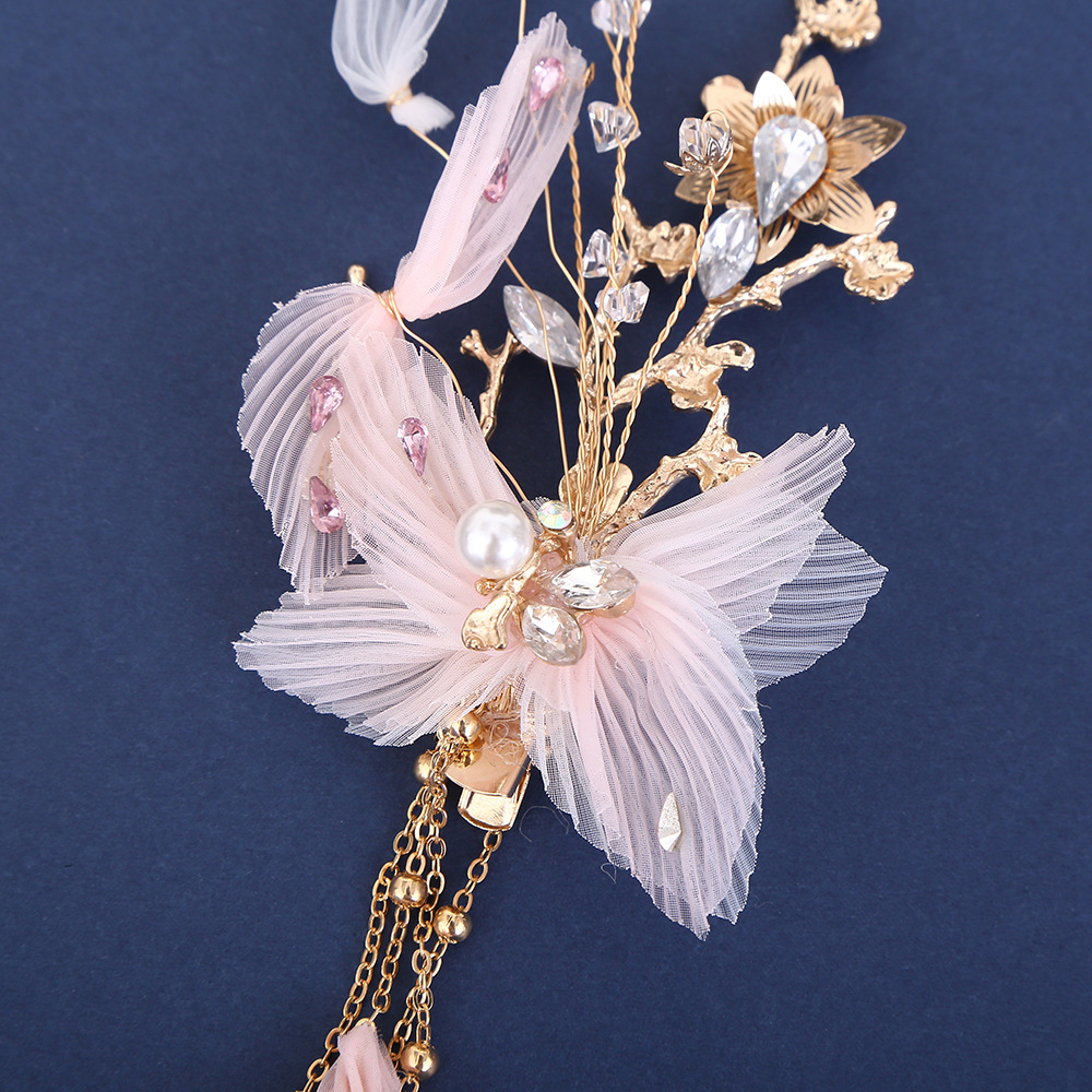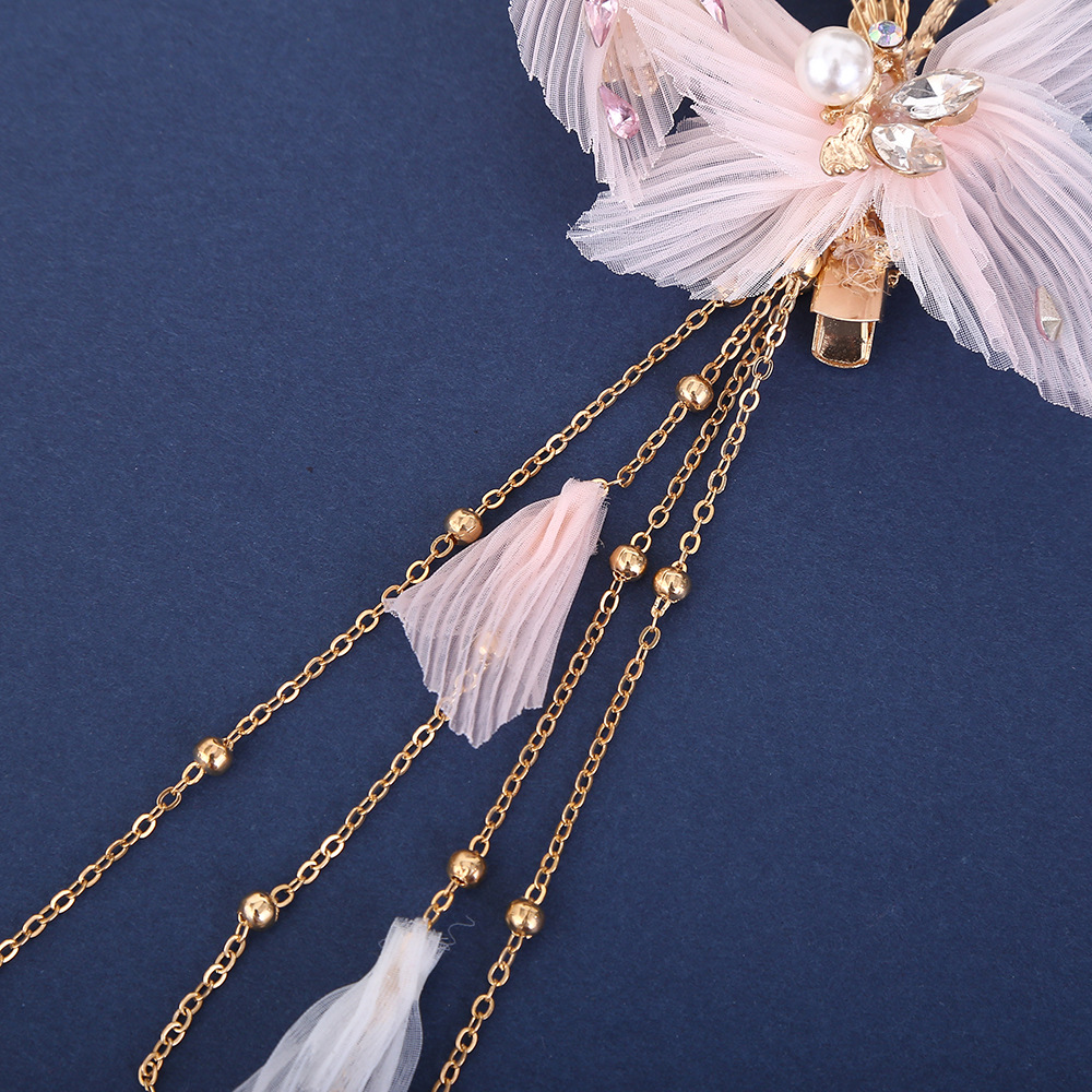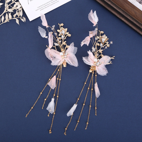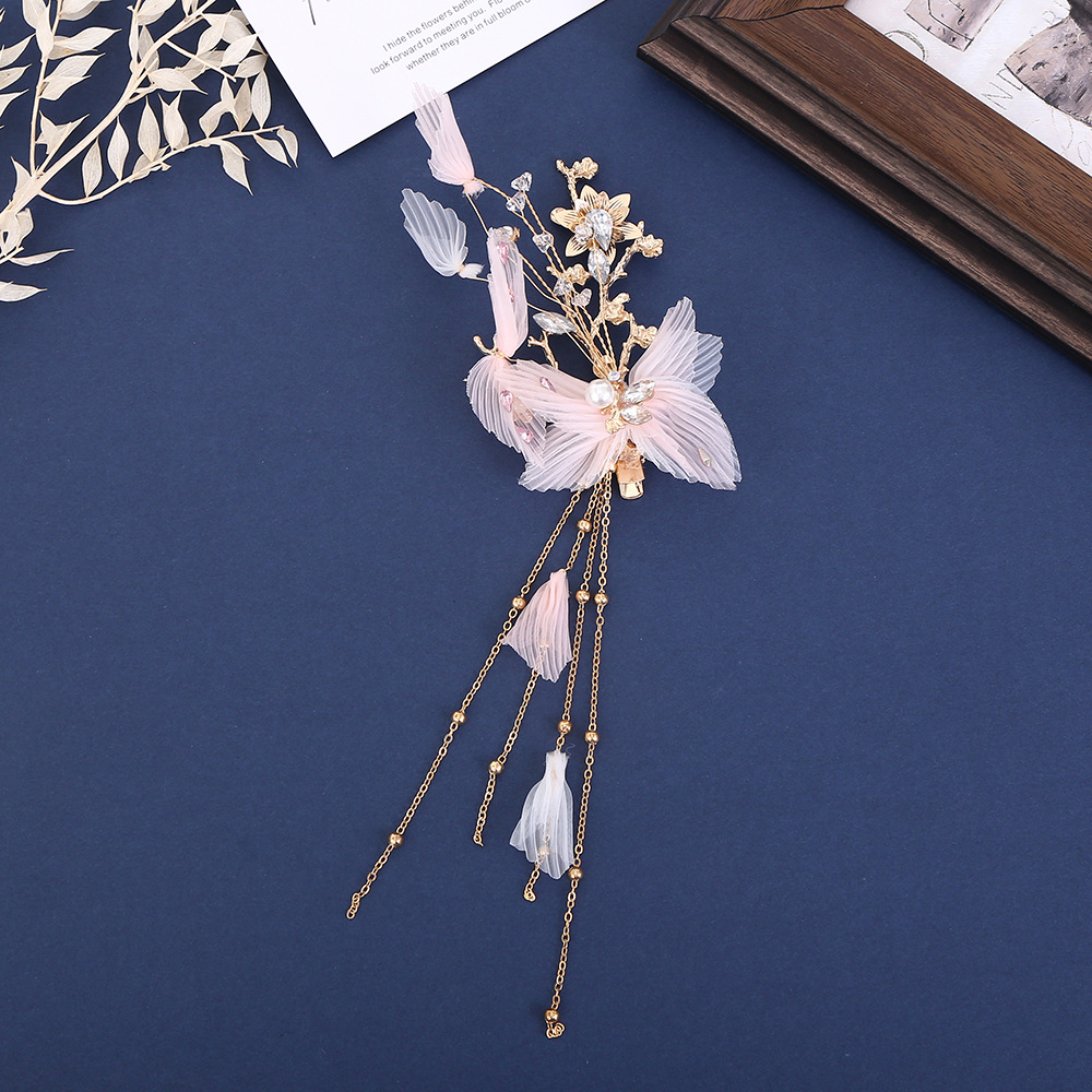 new butterfly pearl tassel hairpin exquisite beautiful mori style elf hair styling hand-woven side clip wholesale 中文版