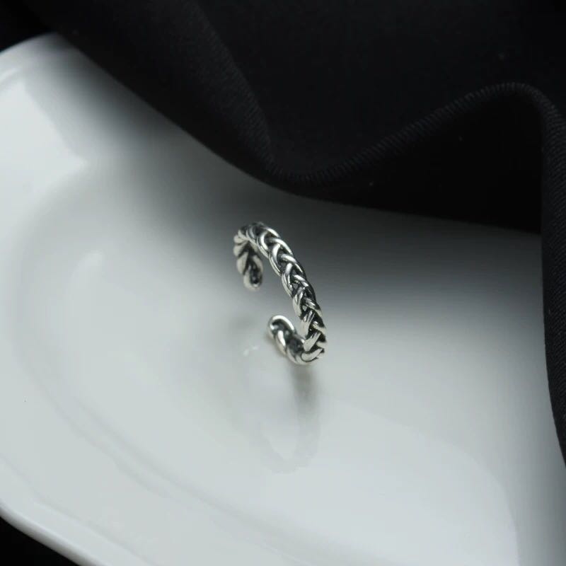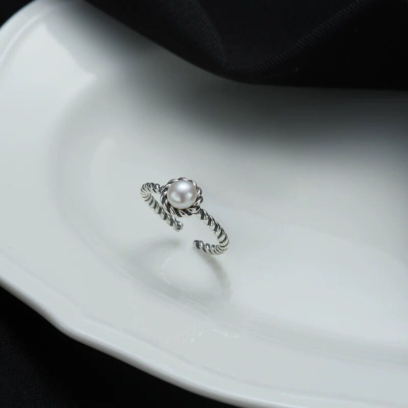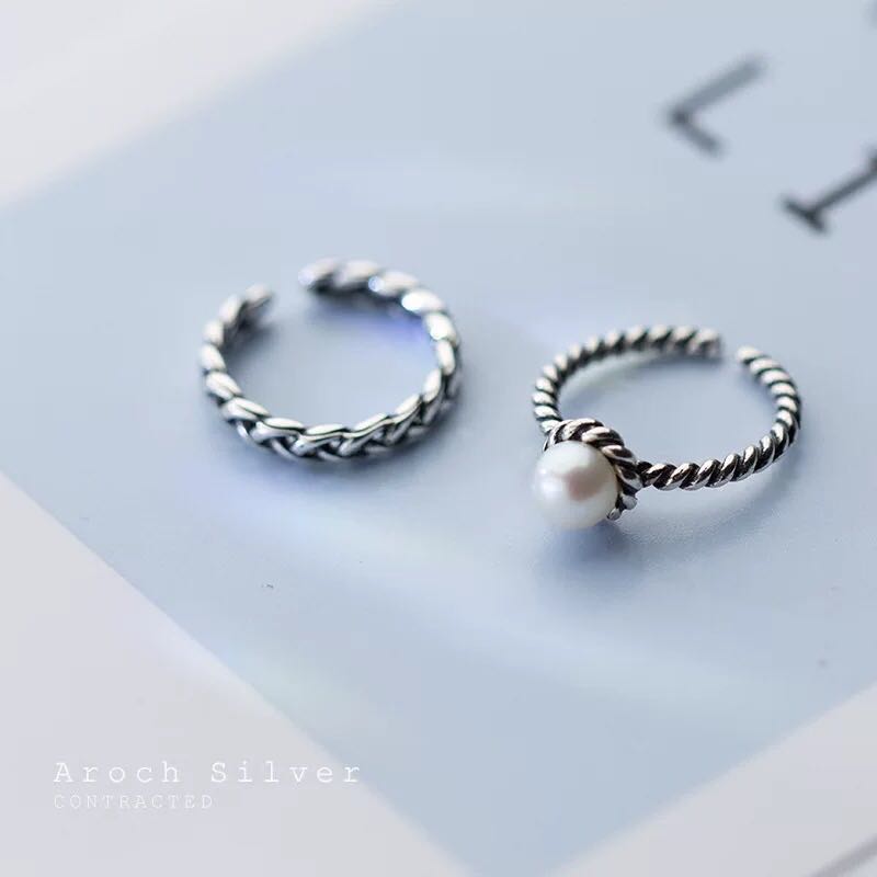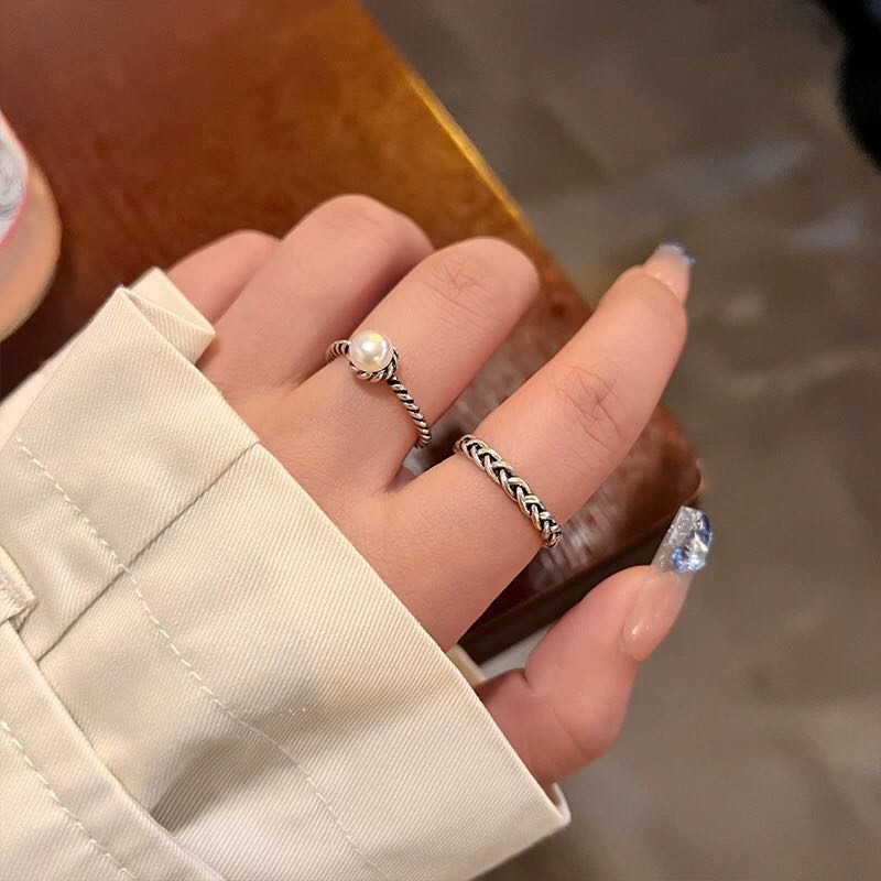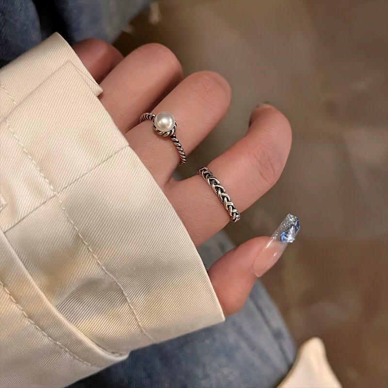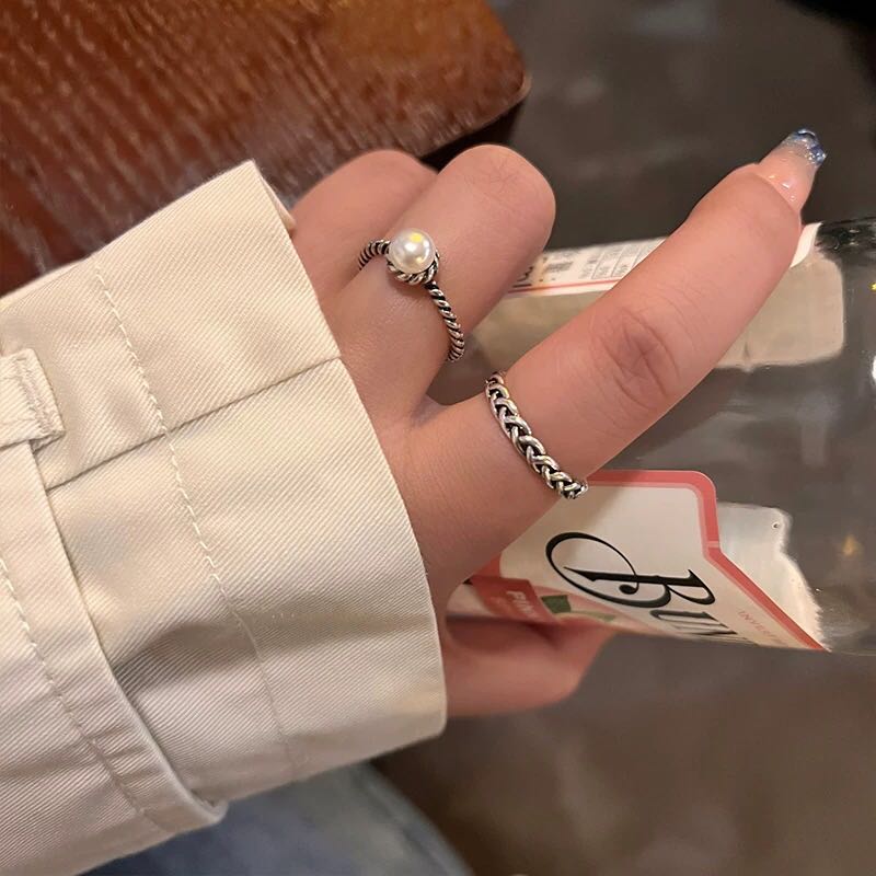 cold style pearl metal twist chain ring two-piece suit special-interest design switchable index finger ring personalized ring 中文版
