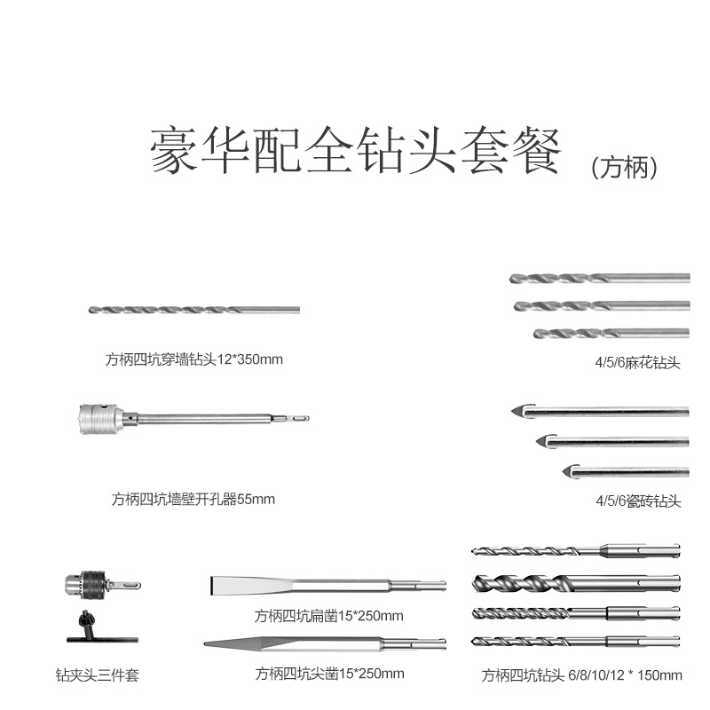 6 drill basic package (electric hammer square handle)