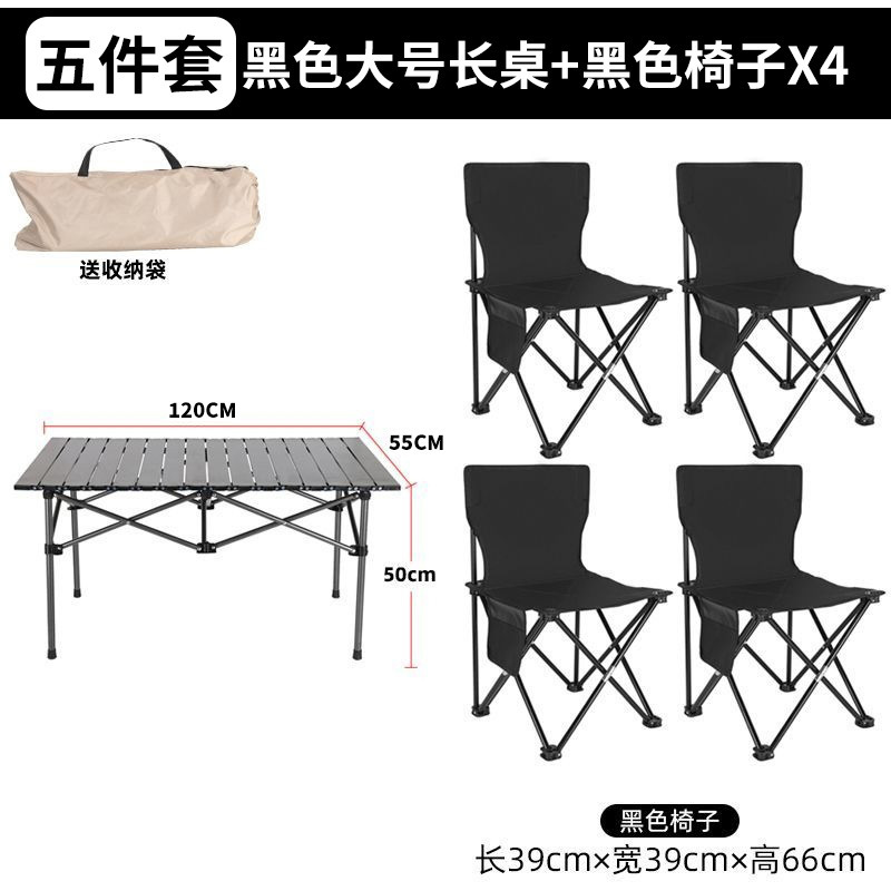black eight-immortal table + black chair x4