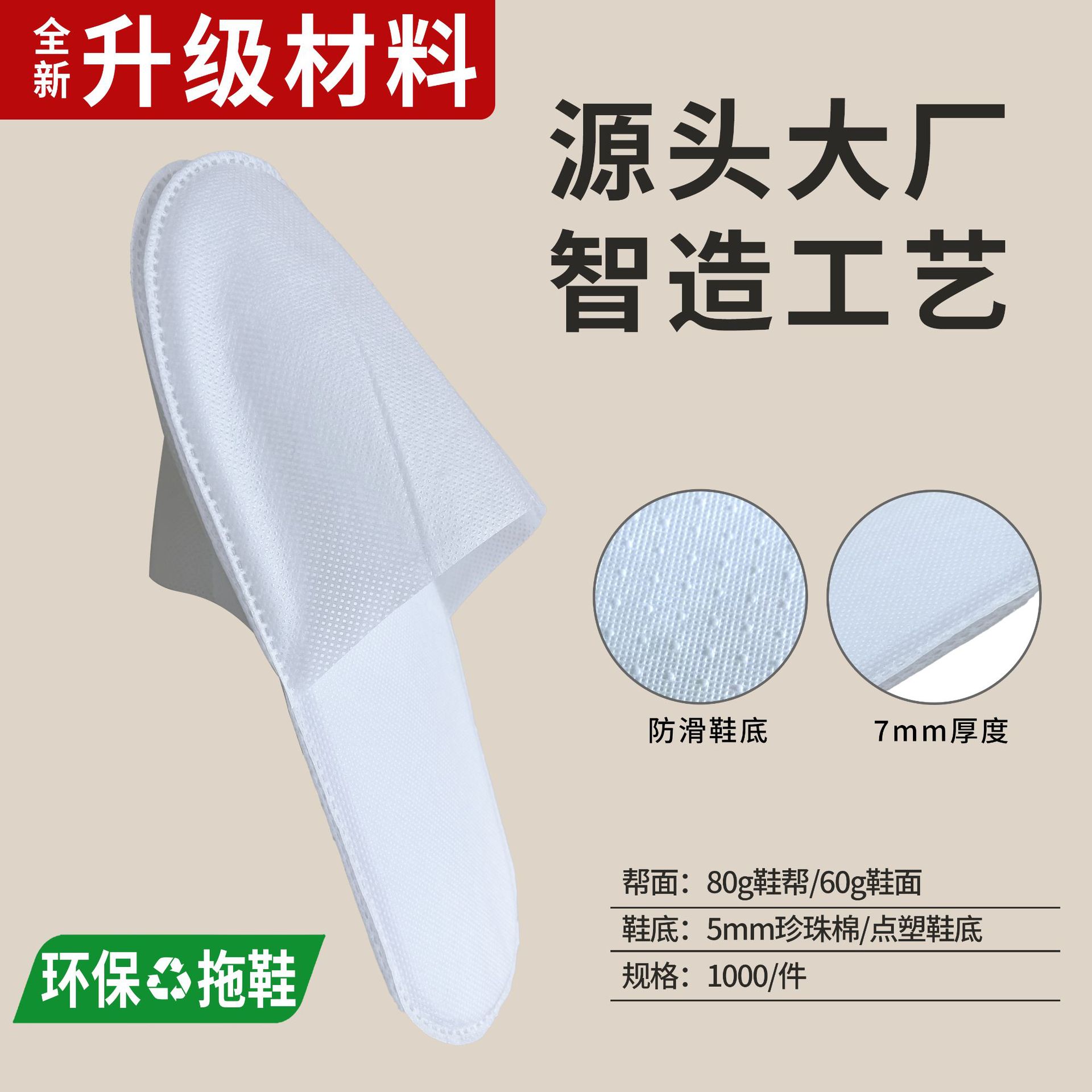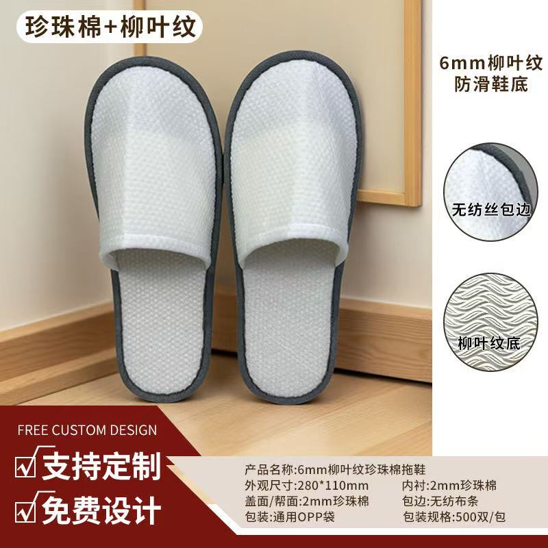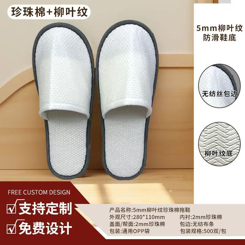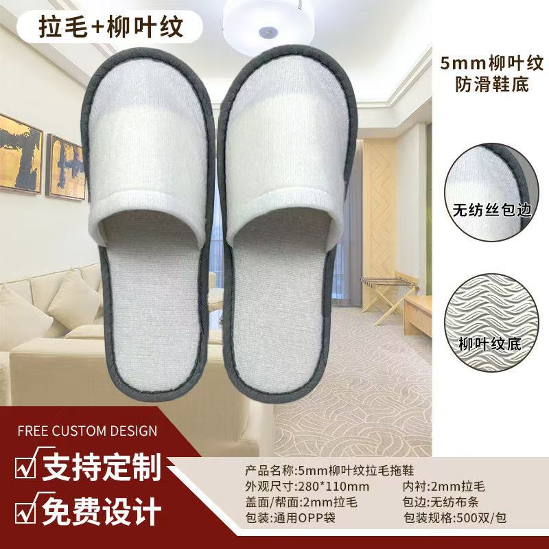 5mm willow leaf pattern brushed slippers (white edging)
