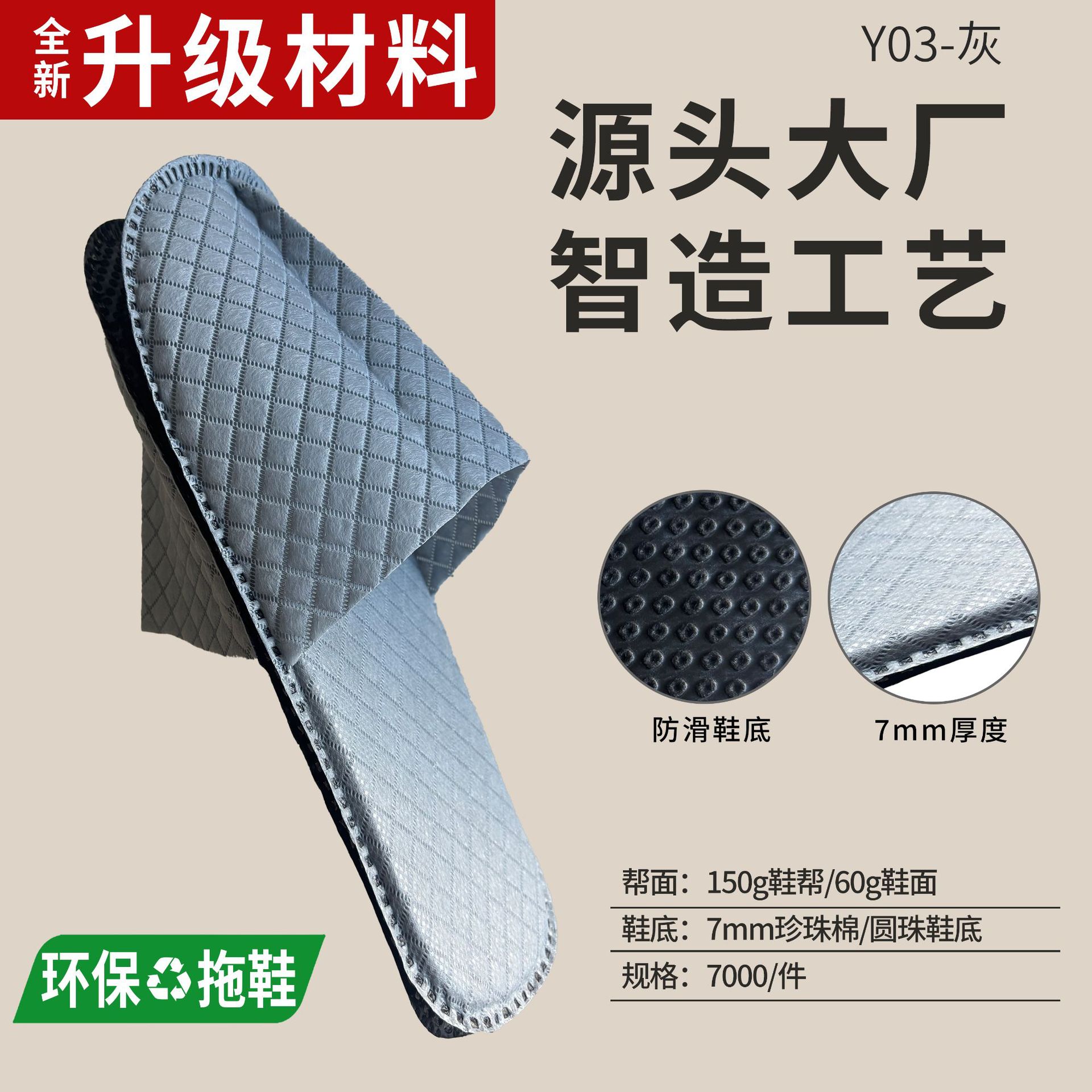 5mm willow leaf pattern brushed slippers (gray edging)
