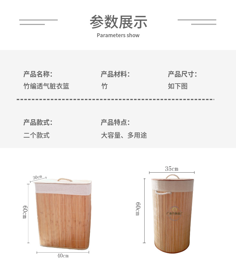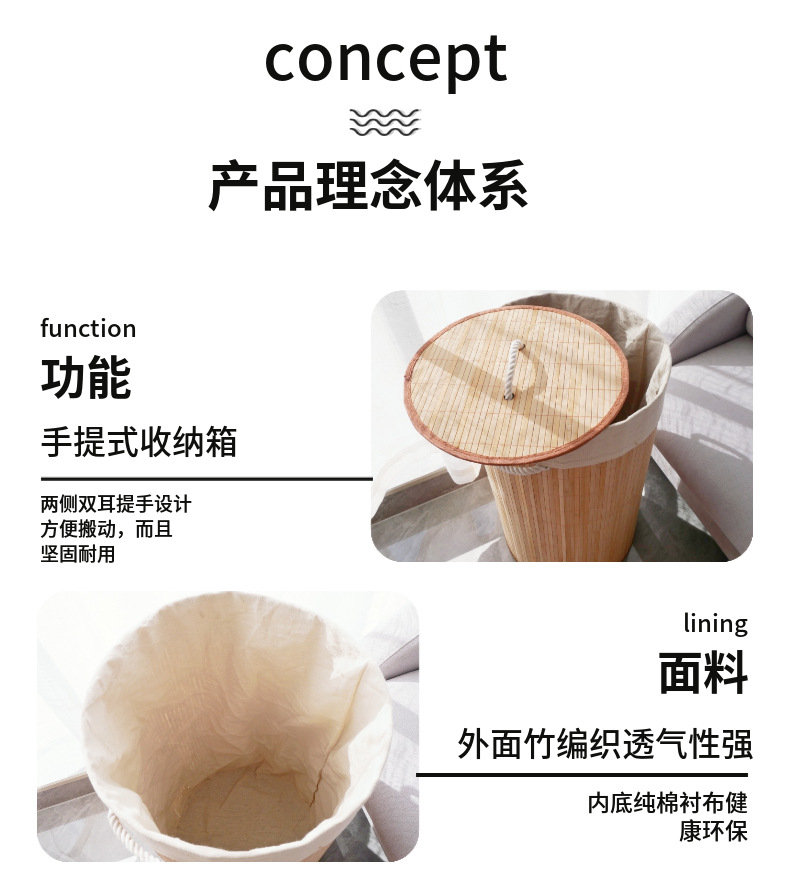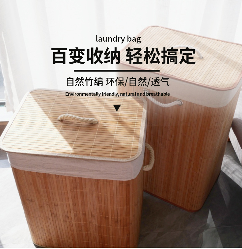 natural bamboo woven hotel household storage box dirty clothes basket folding bamboo basket 中文版