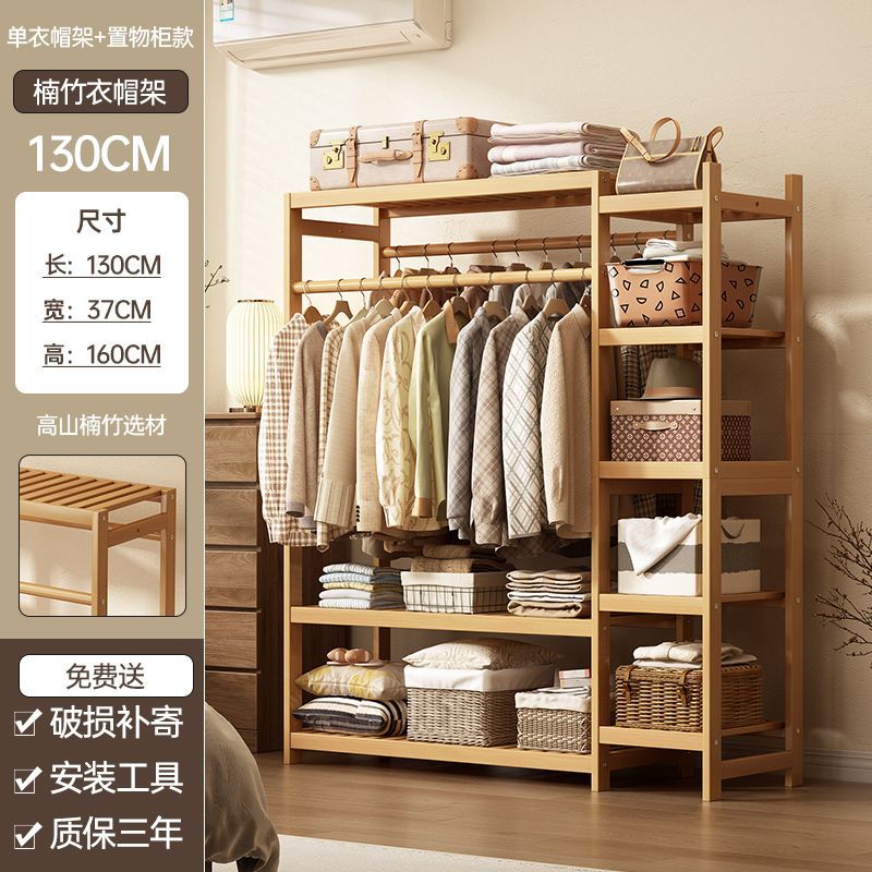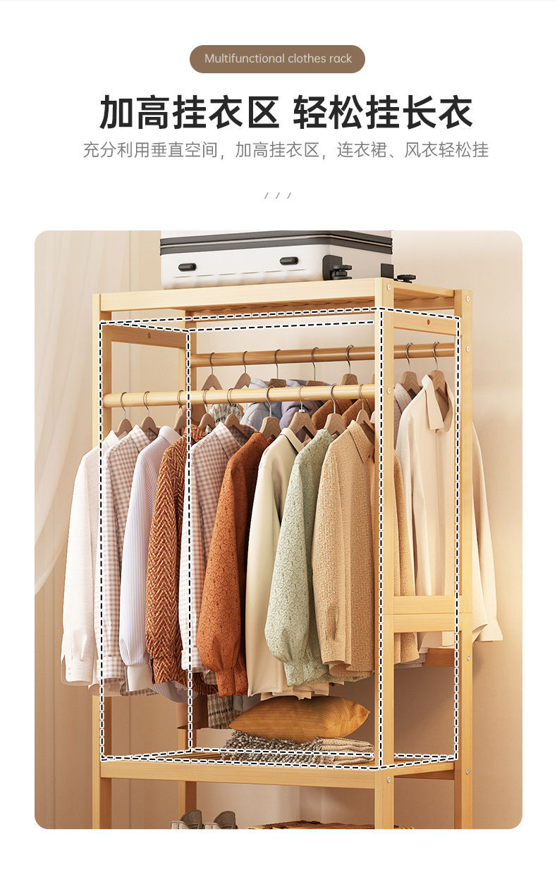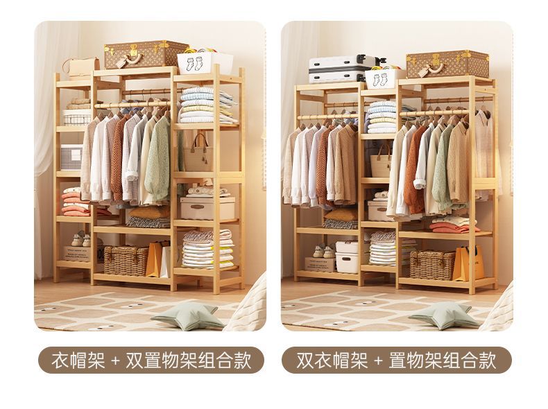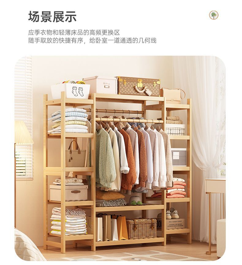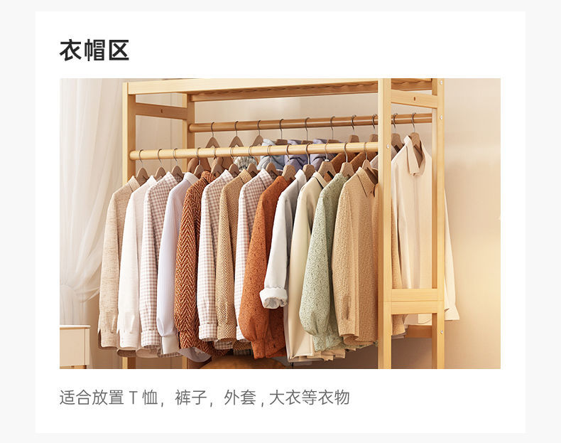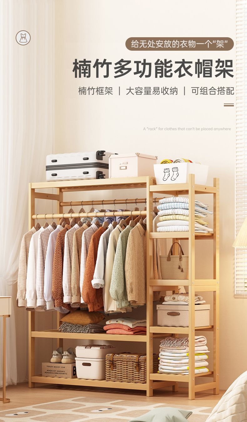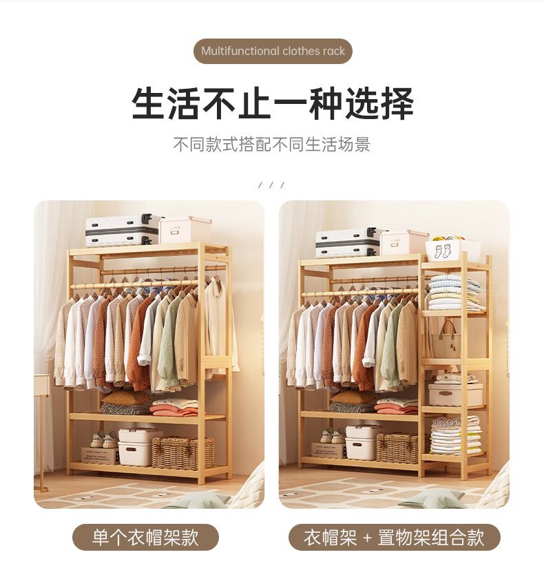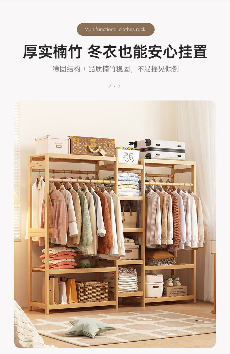 bamboo hanger household floor-type clothes tree dormitory rental house space-saving storage artifact large capacity wardrobe 中文版