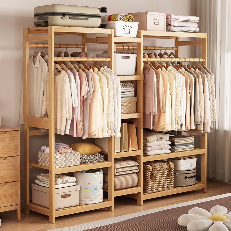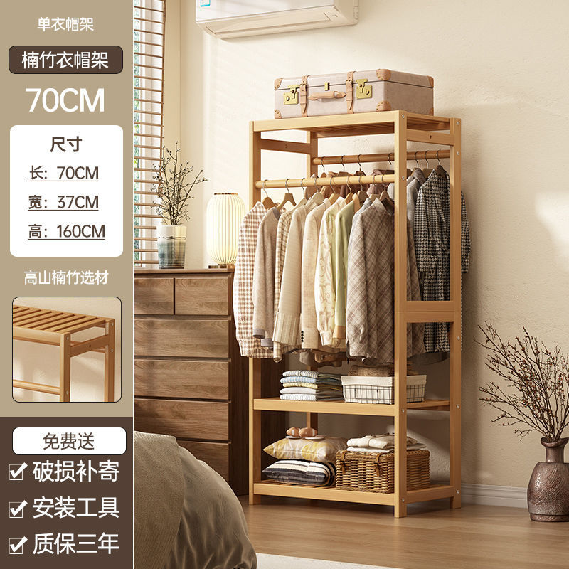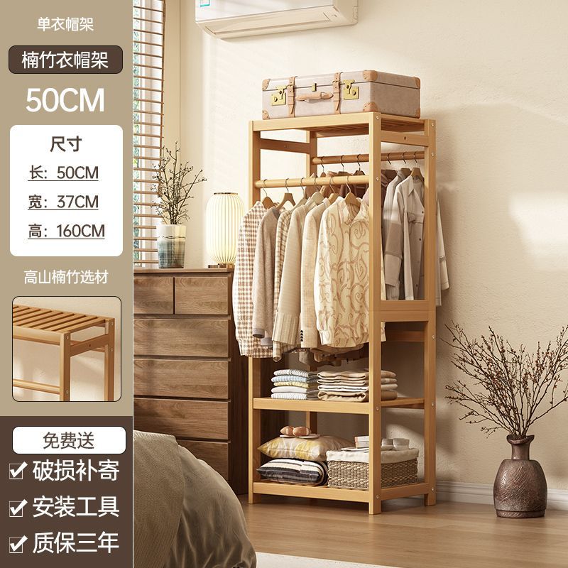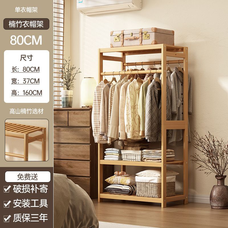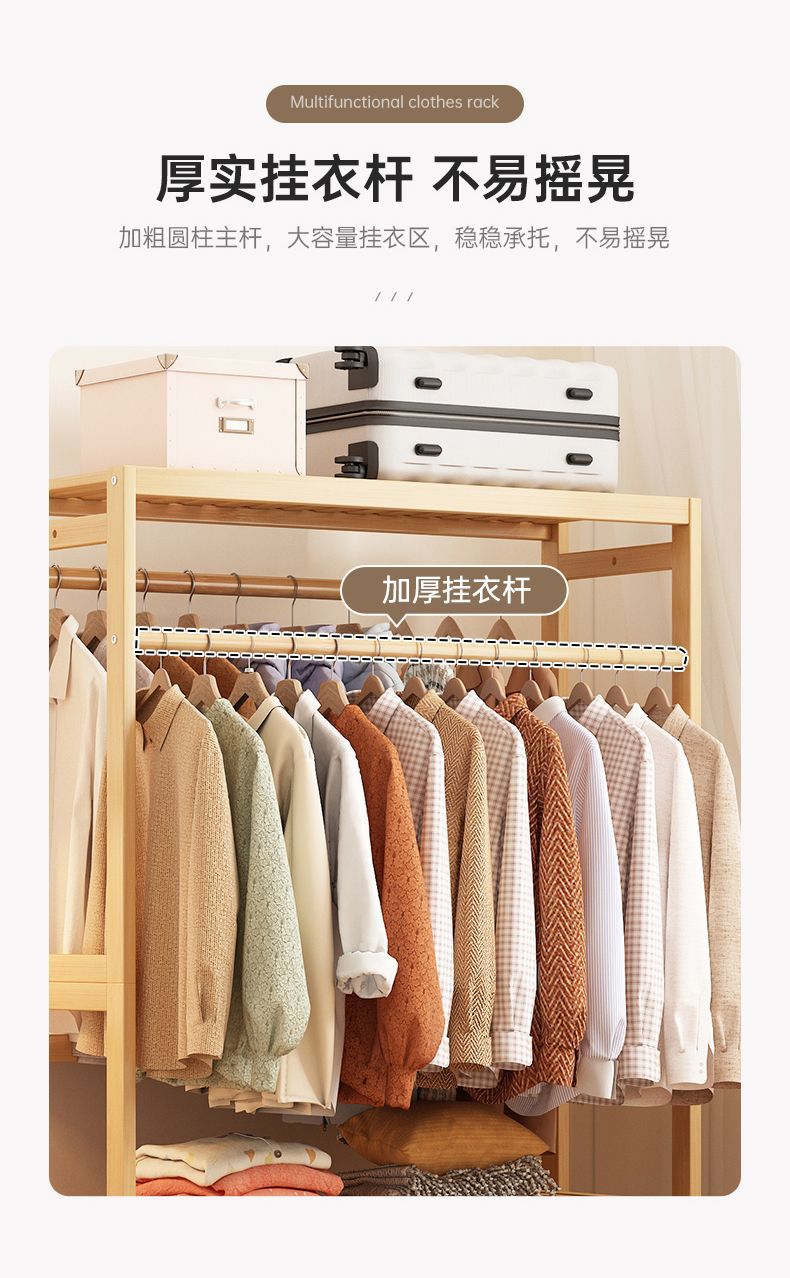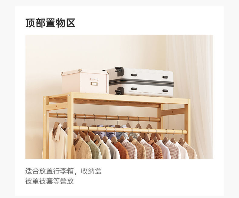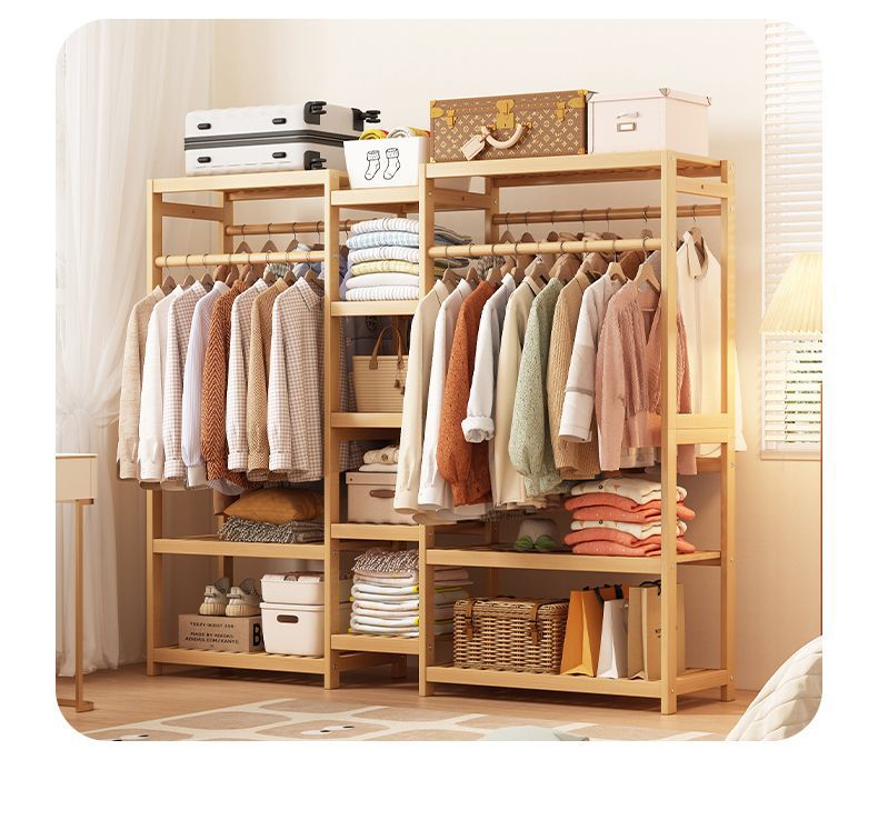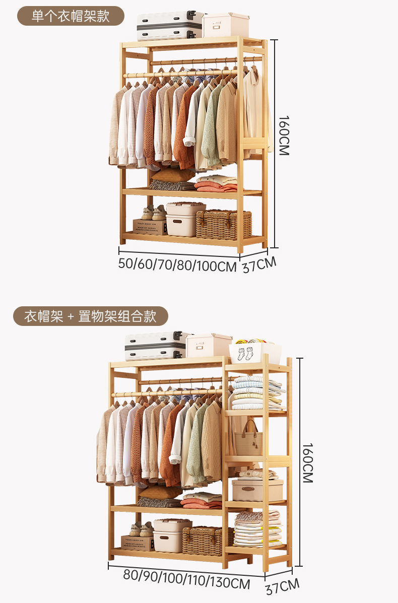 bamboo hanger household floor-type clothes tree dormitory rental house space-saving storage artifact large capacity wardrobe 中文版