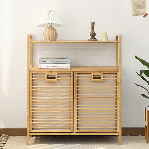 household multi-functional dirty clothes basket storage basket bathroom washing machine clothing classification storage rack bamboo storage locker 中文版