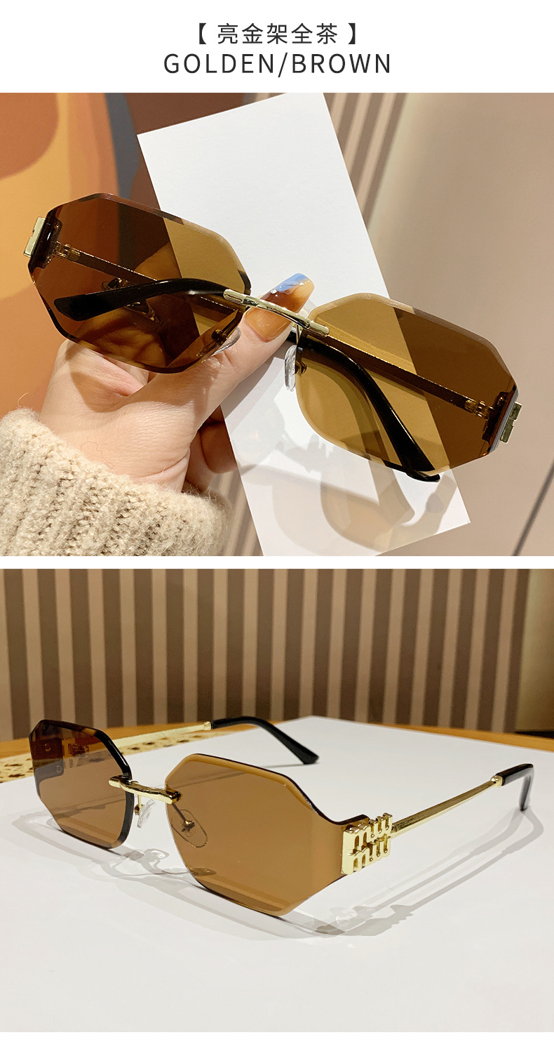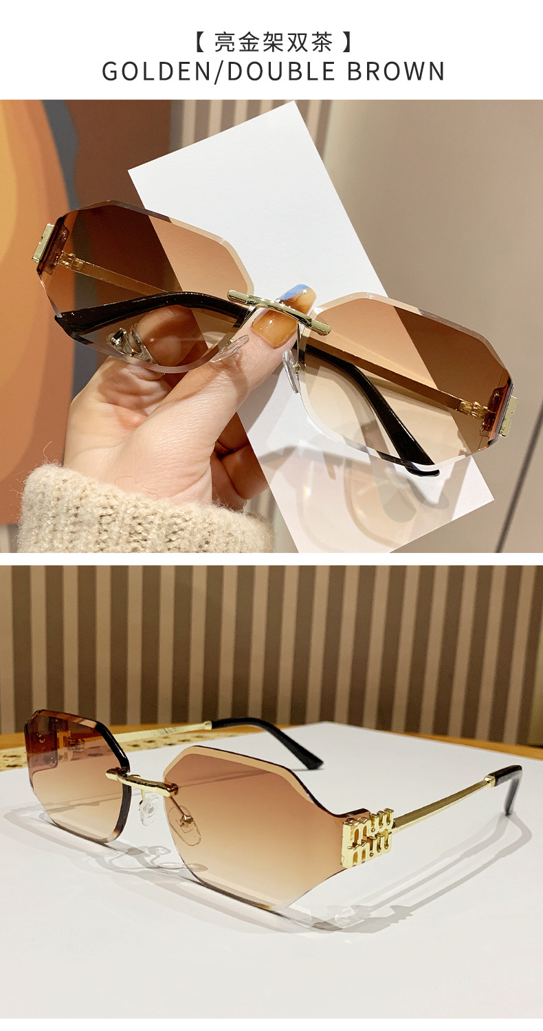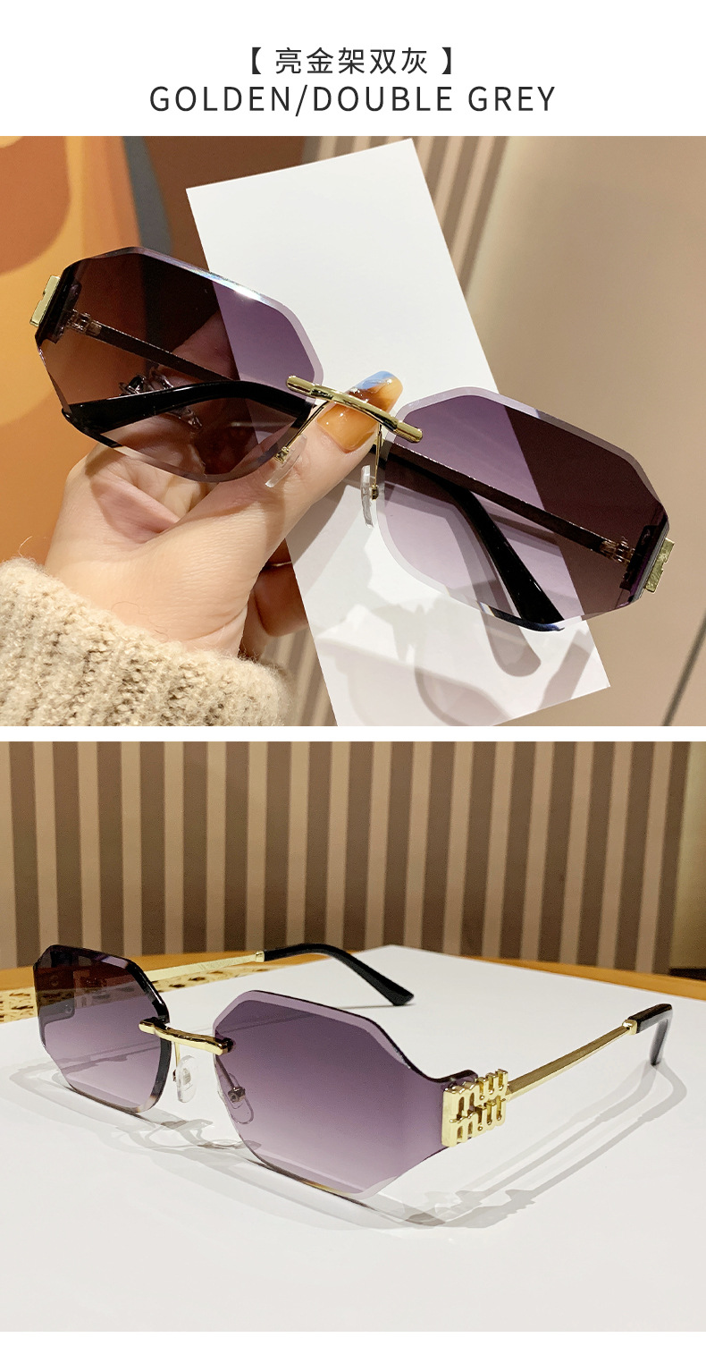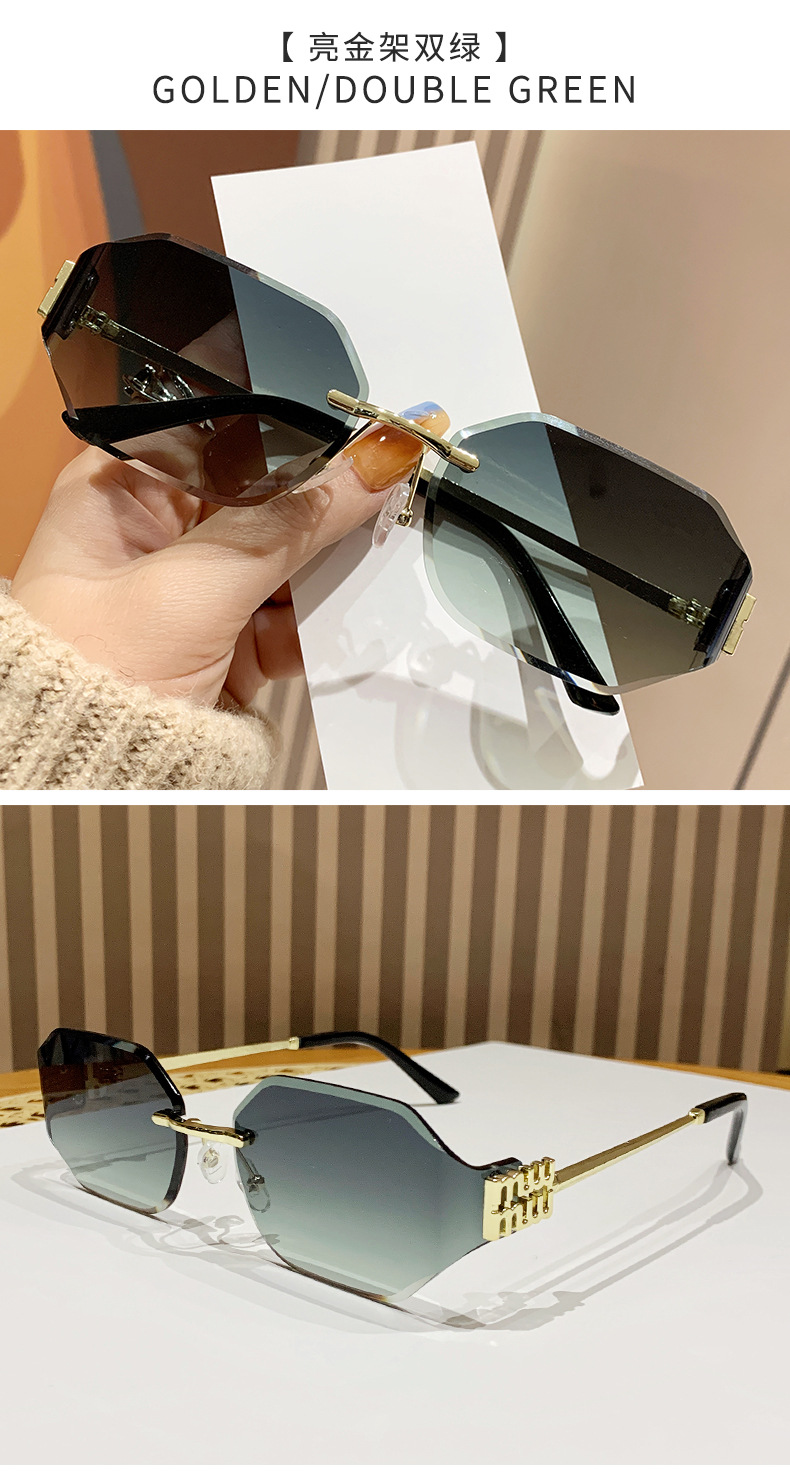 mujia metal frameless polygon fashion sunglasses cross-border european and american ladies sunglasses trendy curved surface sun glasses 中文版