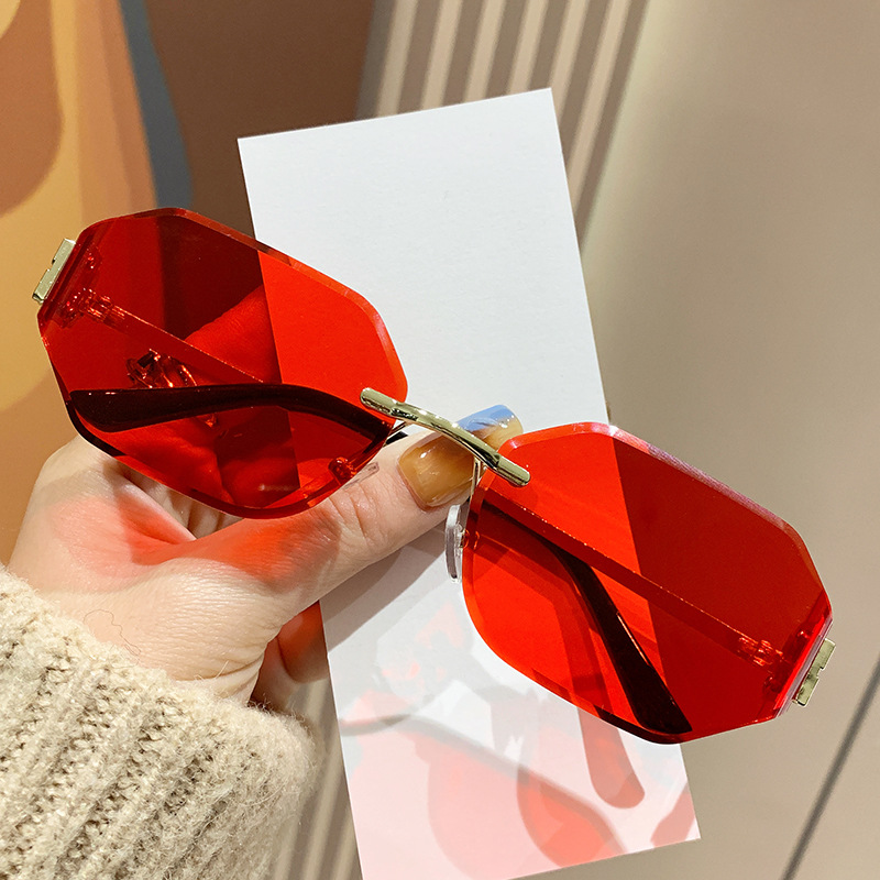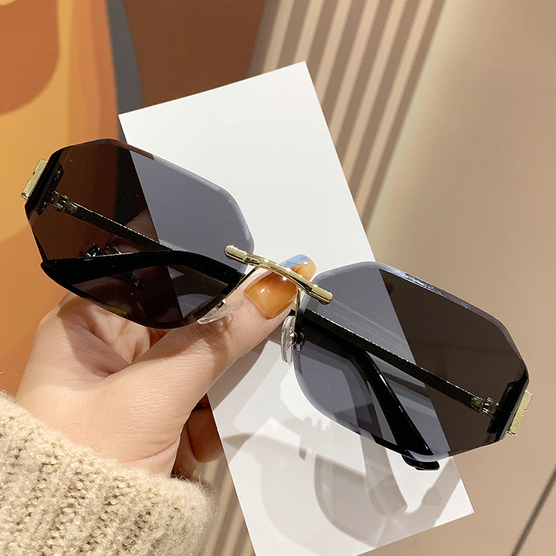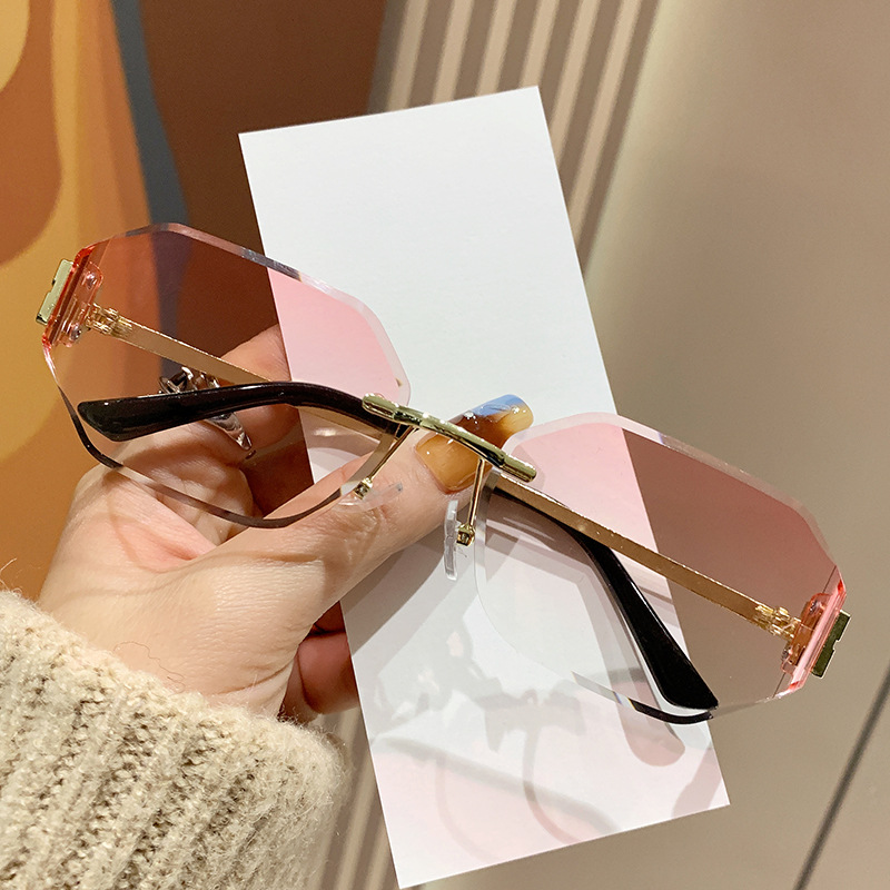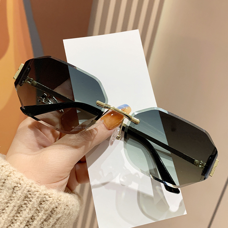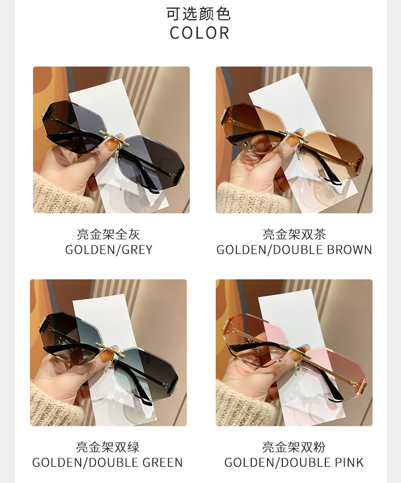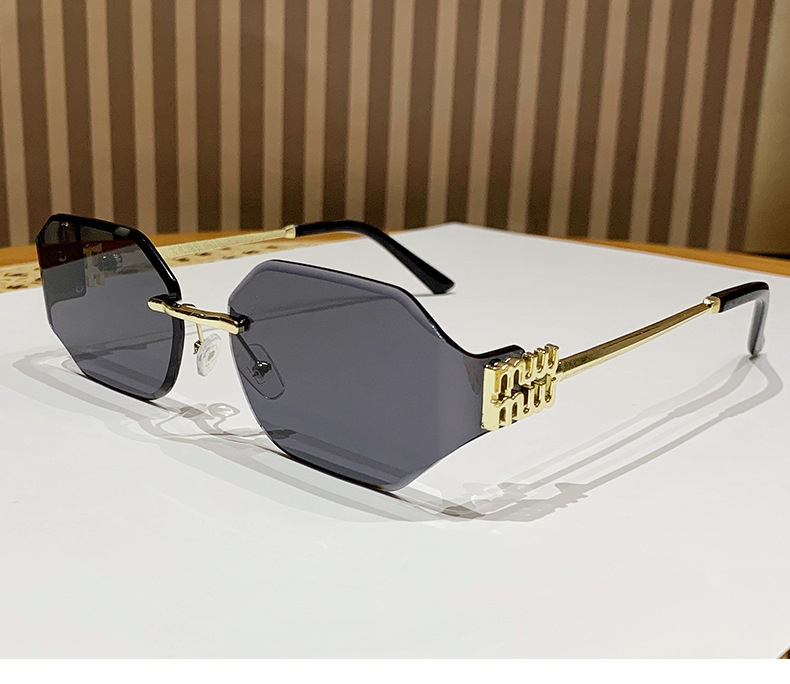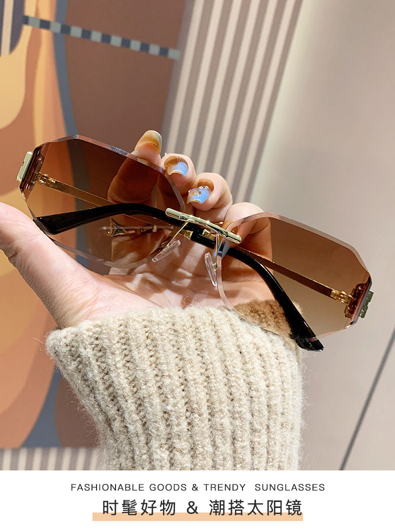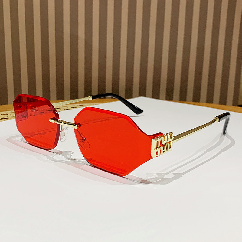 mujia metal frameless polygon fashion sunglasses cross-border european and american ladies sunglasses trendy curved surface sun glasses 中文版