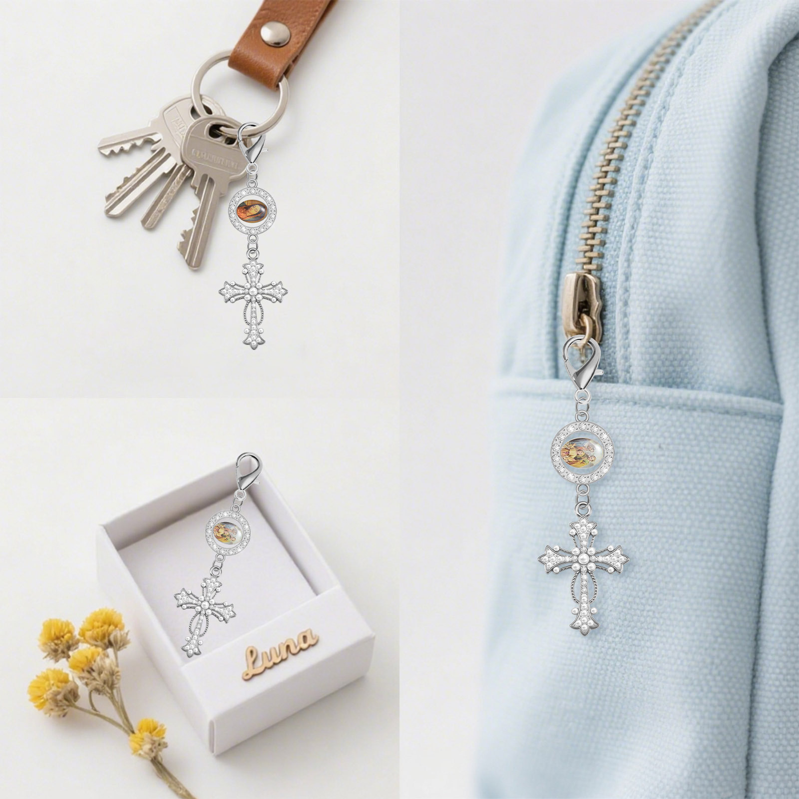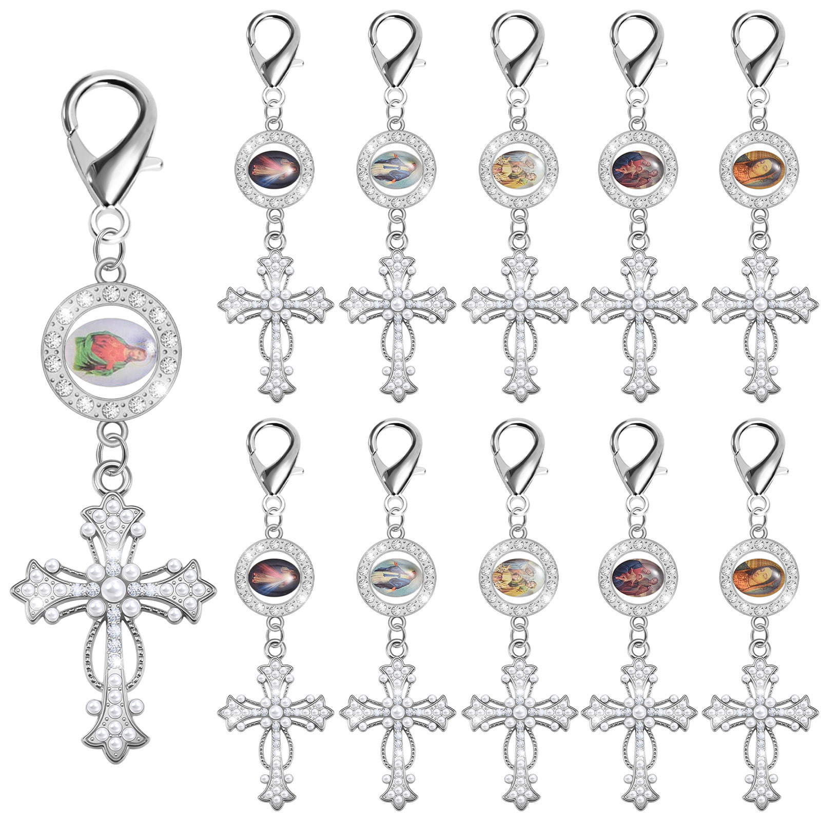 europe and america cross border hot sale fashion creative alloy inlaid pearl cross hanging piece pendant necklace diy ornament 中文版