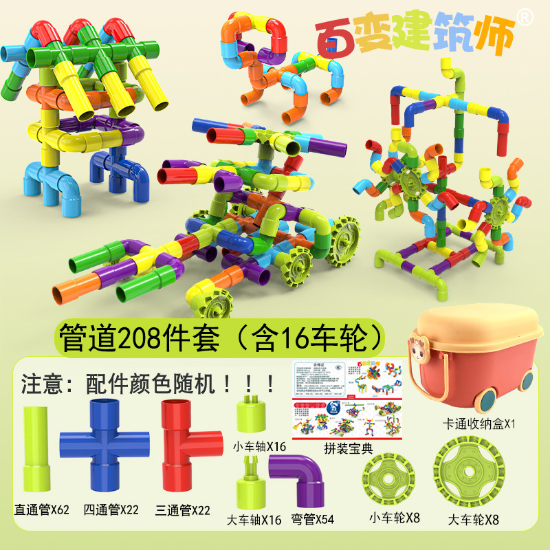 large water pipe building blocks 208pcs-cartoon storage box