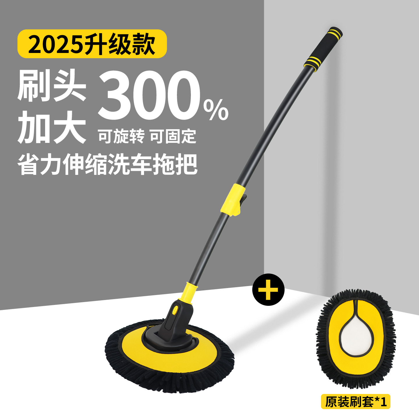 3-section aluminum alloy retractable car wash mop + brush set