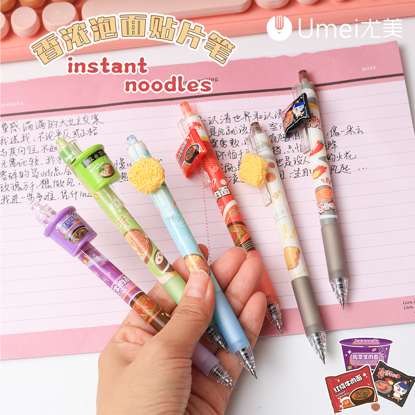 youmei 3066 fragrant instant noodles press gel pen cartoon cute snack patch black pen student quick-drying brush question pen