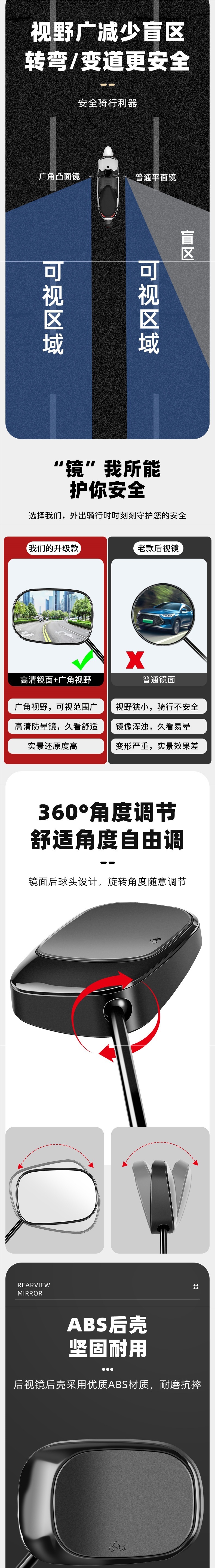 blade shadow convex rearview mirror pair + positive and negative wire screws