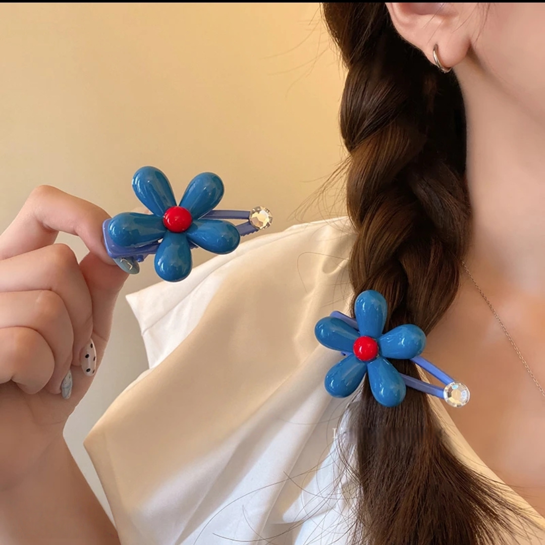#2 [small blue flowers barrettes] one pack