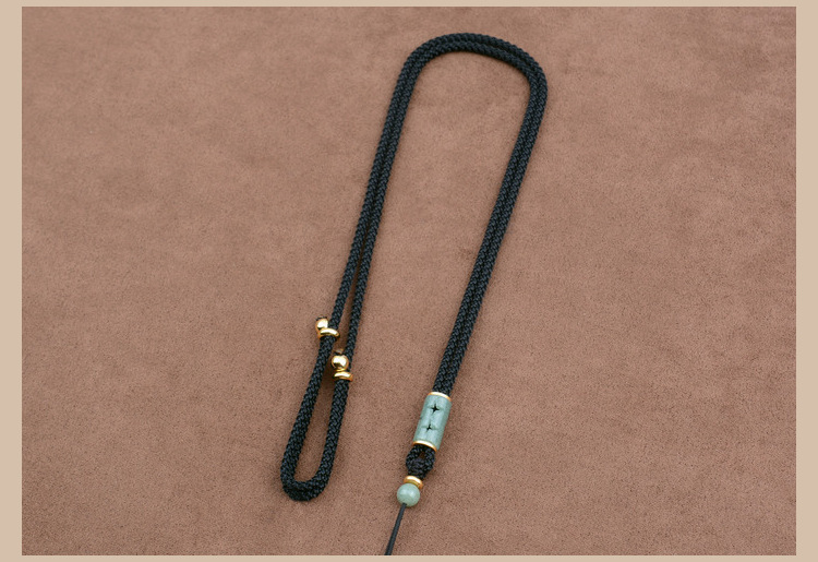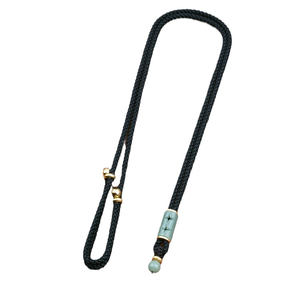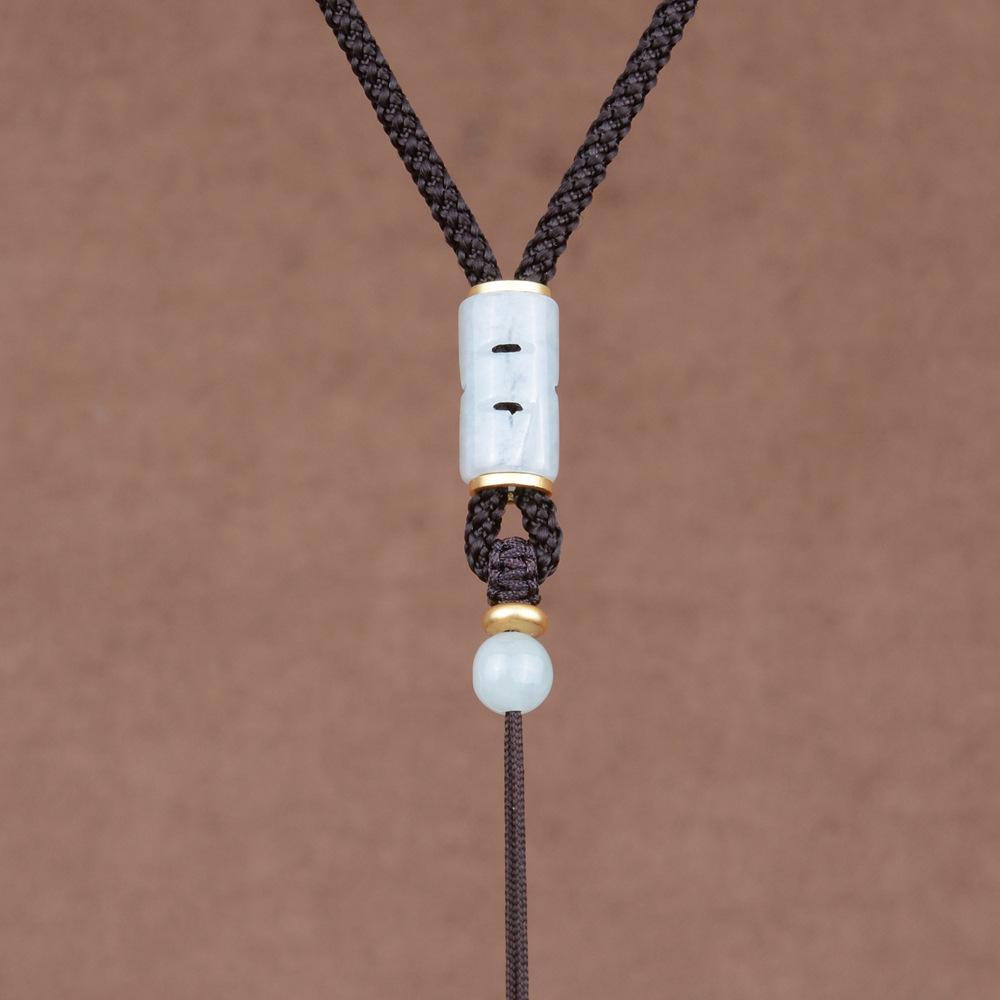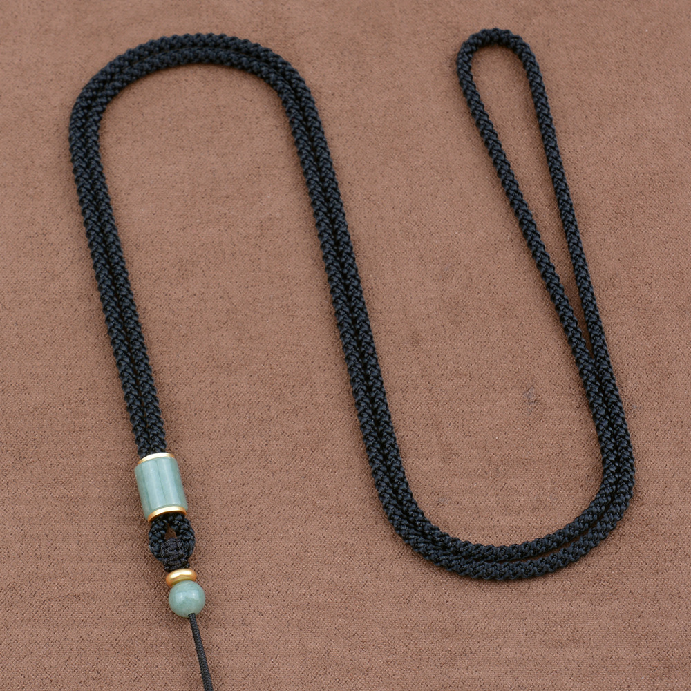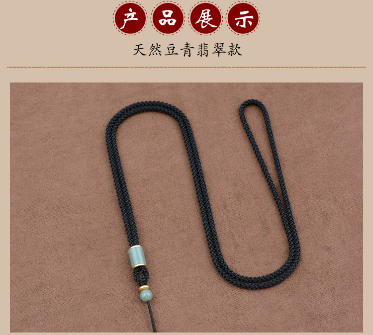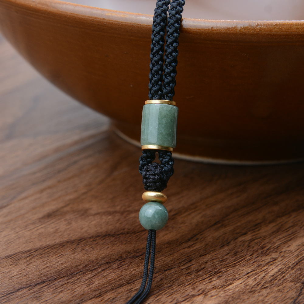 natural green beans jade barrel beads/black adjustable