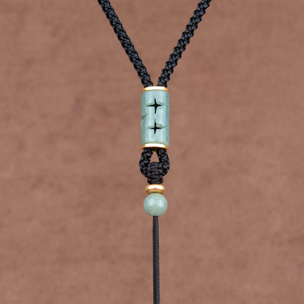 green beans jade carved barrel beads/red fixed