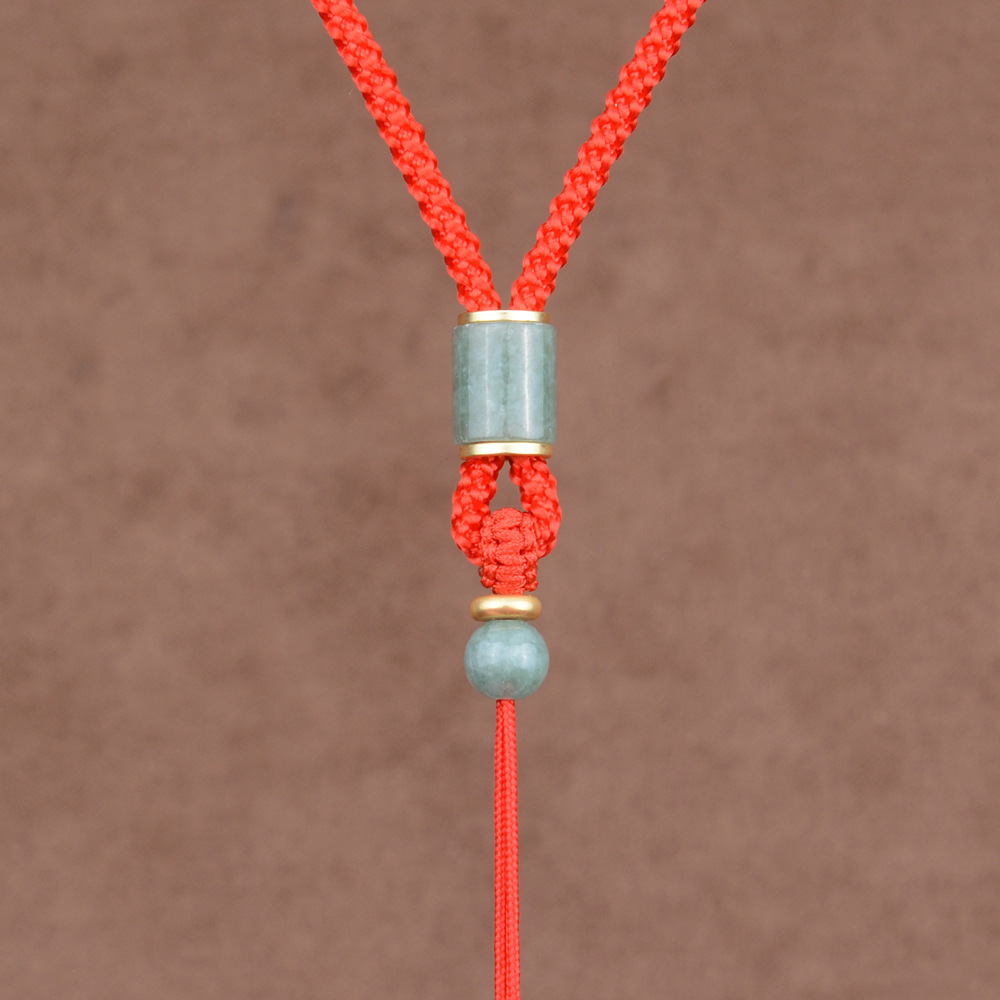 natural green beans jade barrel beads/red adjustable