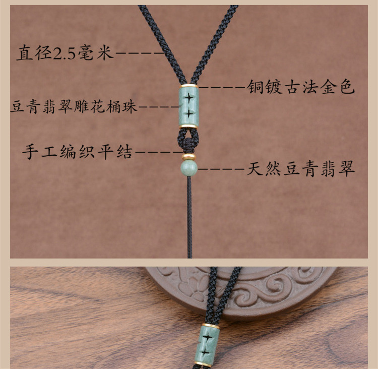 green beans jade carved barrel beads/black adjustment