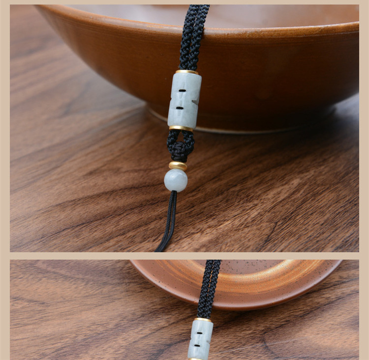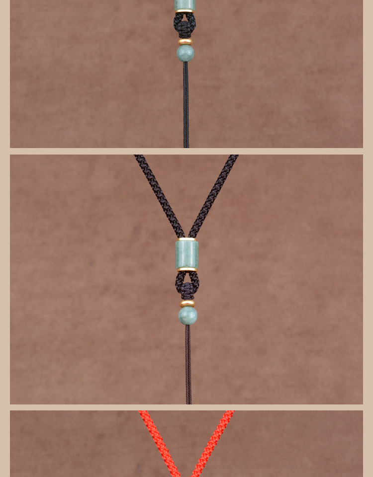 green beans jade carved barrel beads/red adjustment