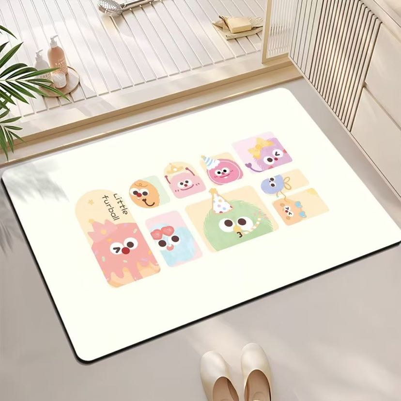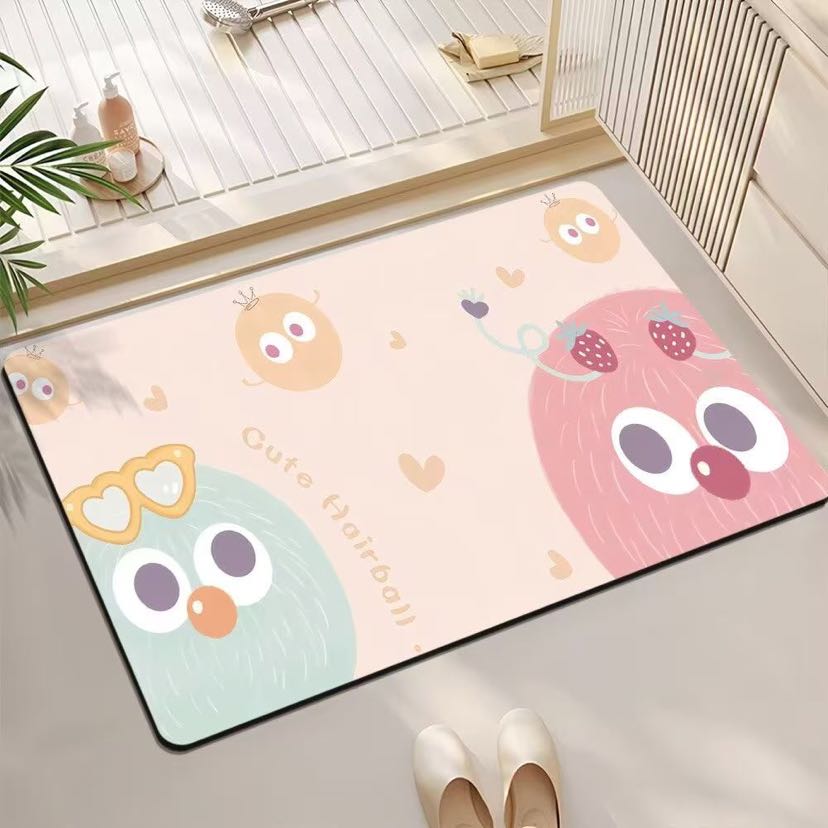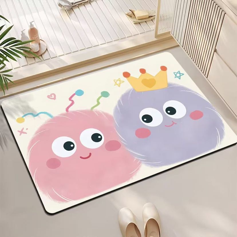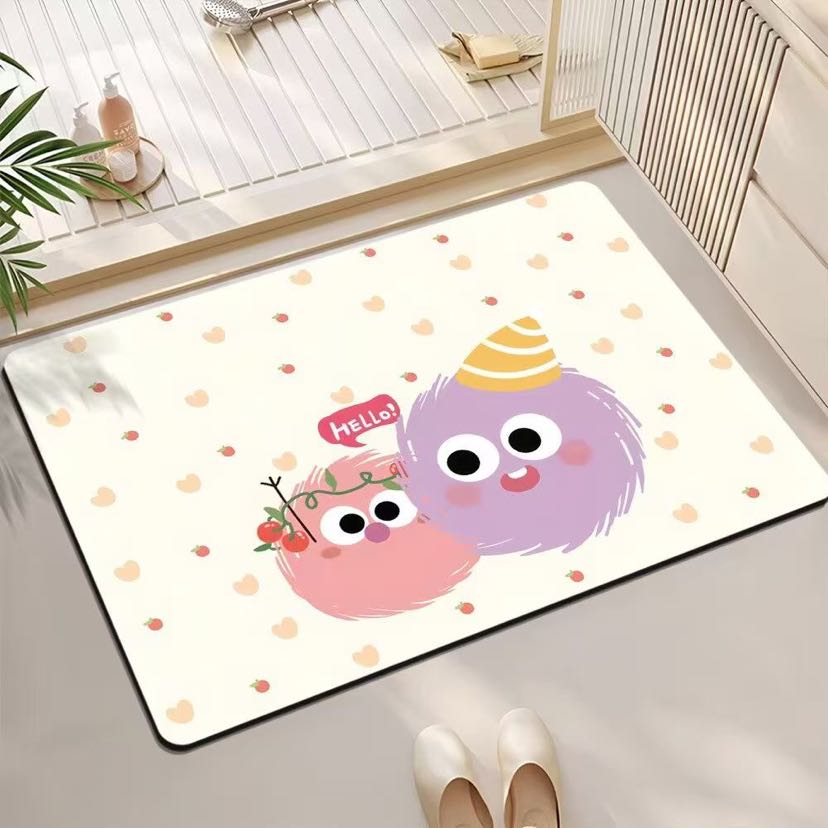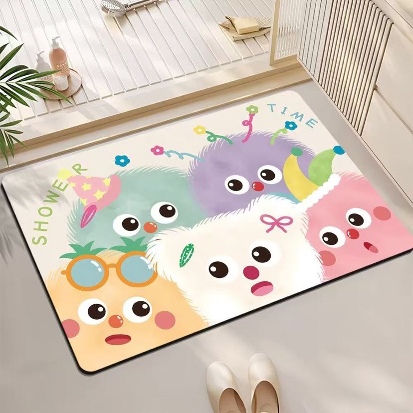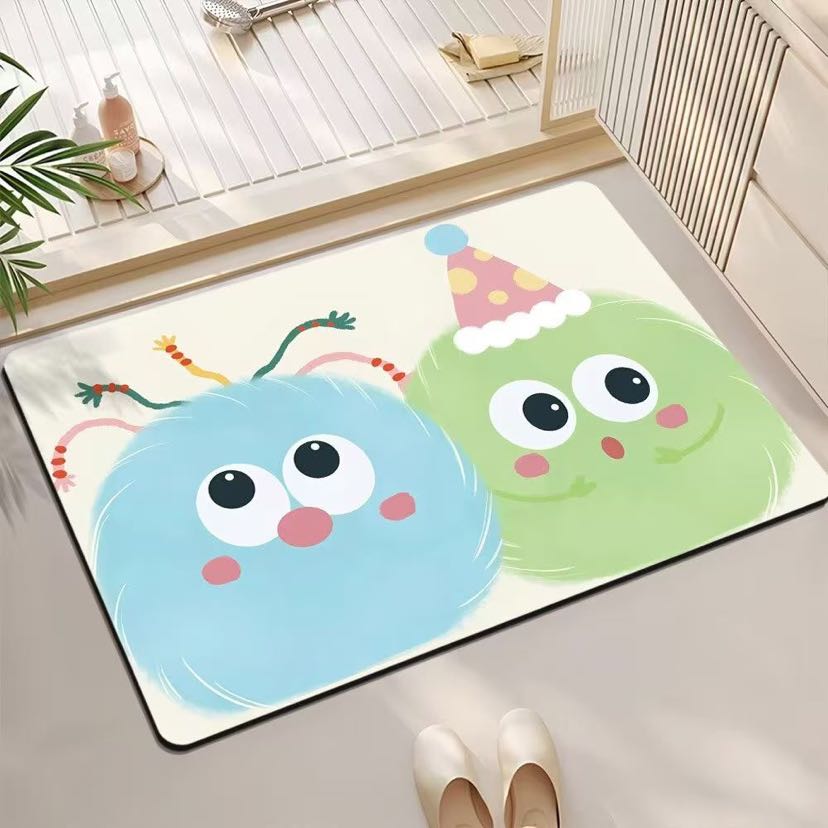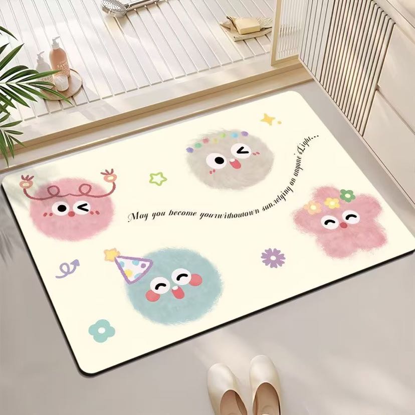 Cartoon bath mat fun bathroom toilet door silicon mud water absorption anti-skid door mat home carpet