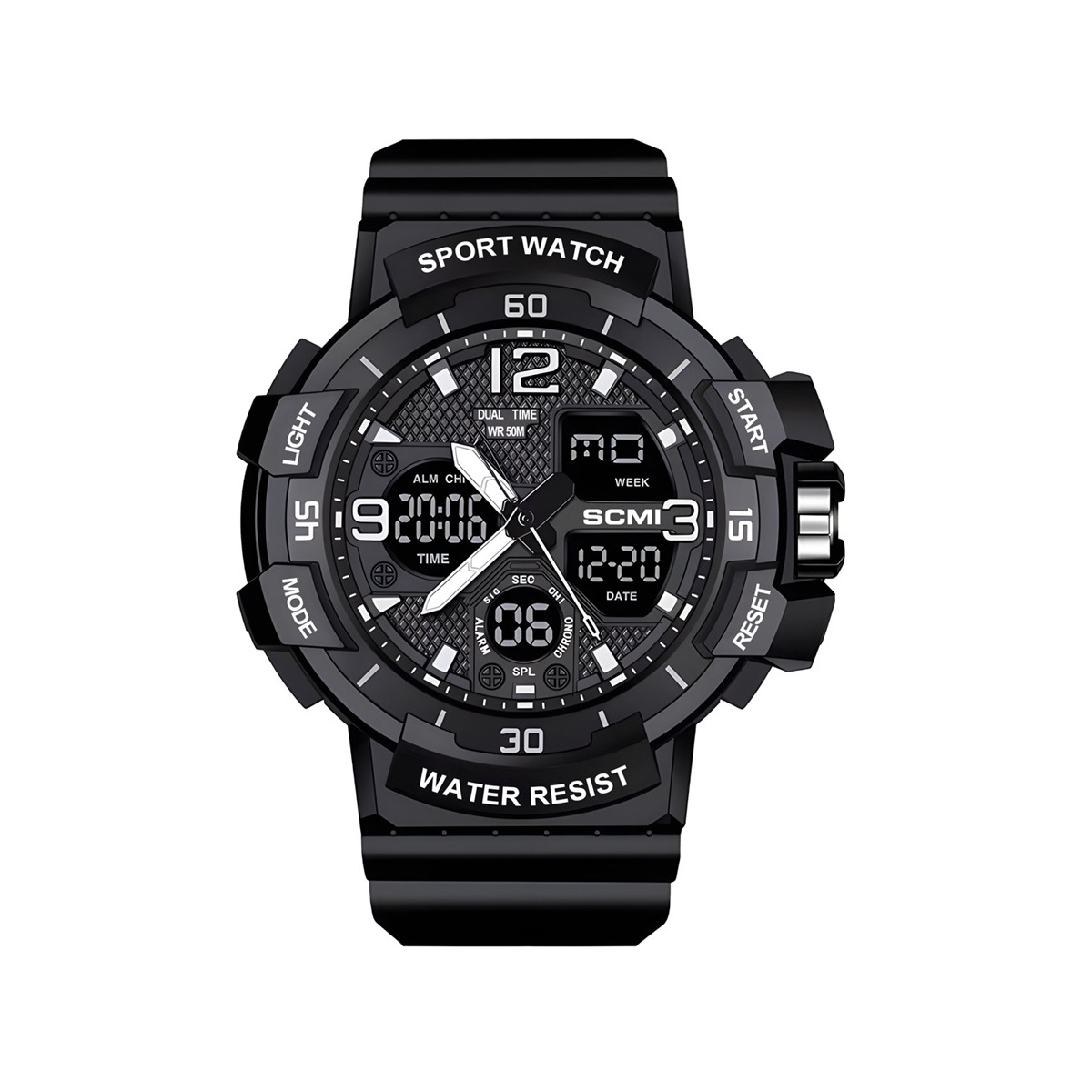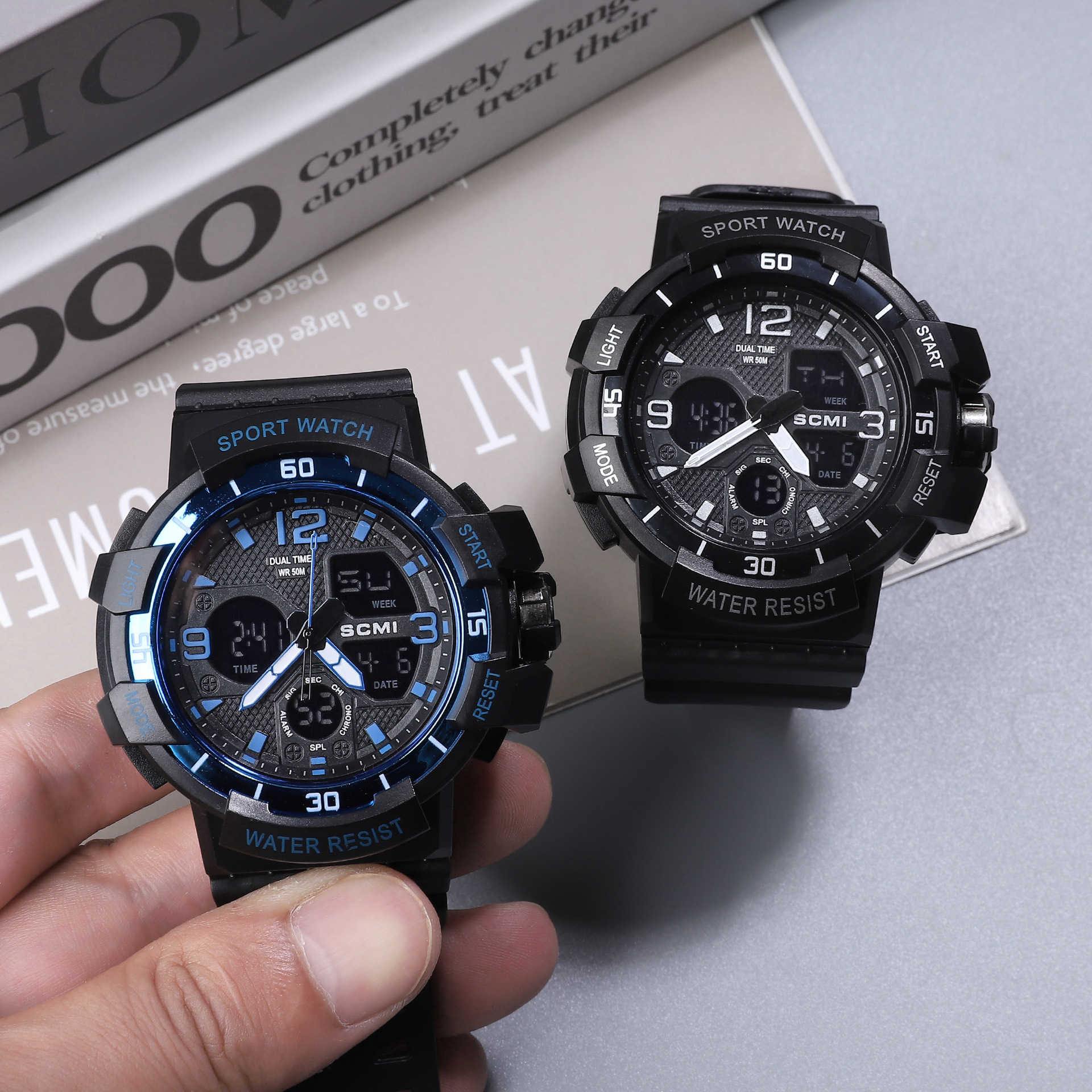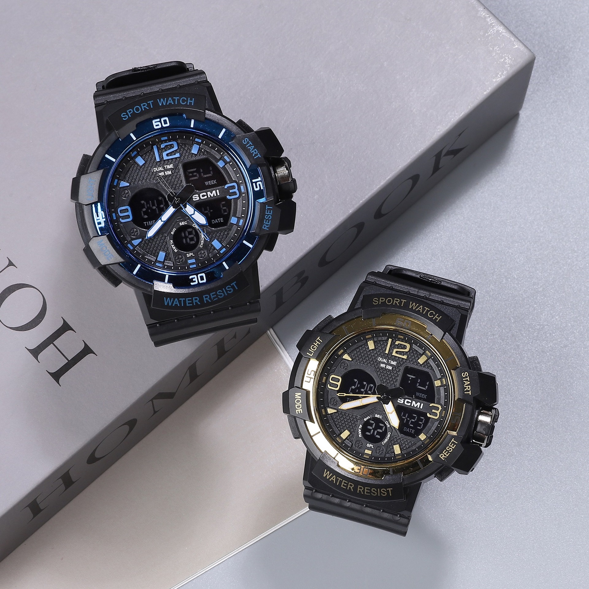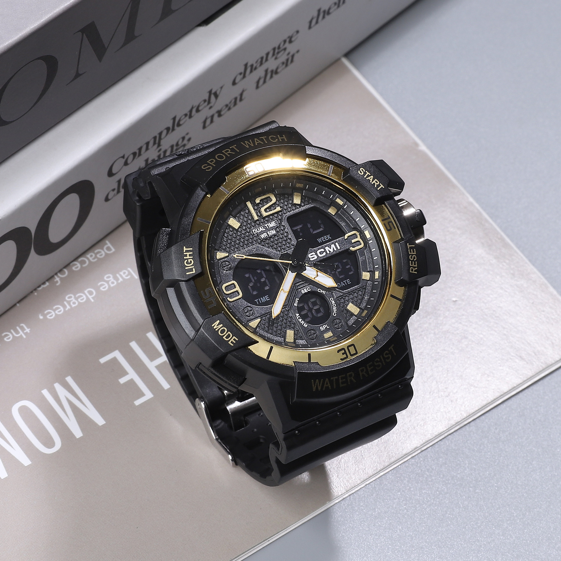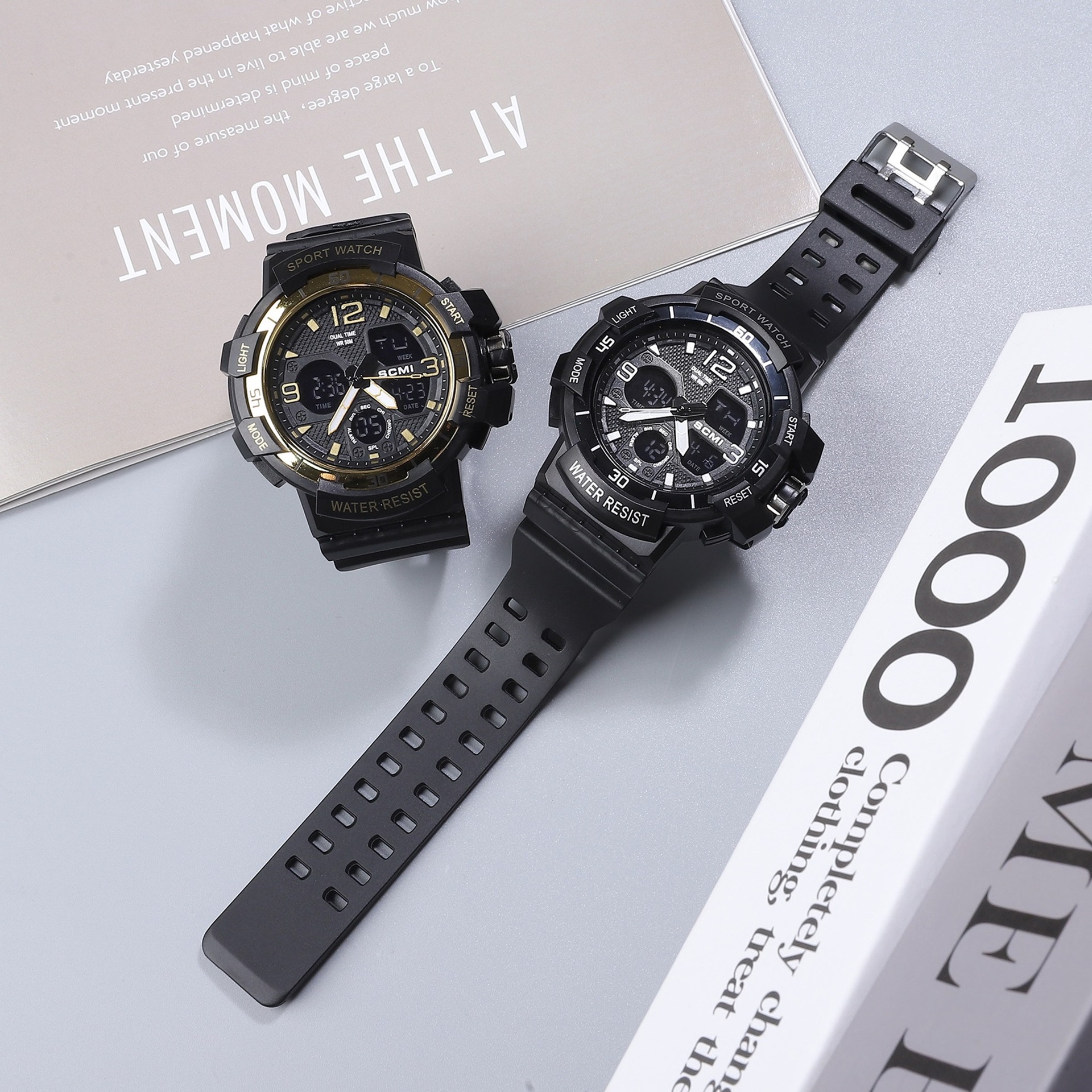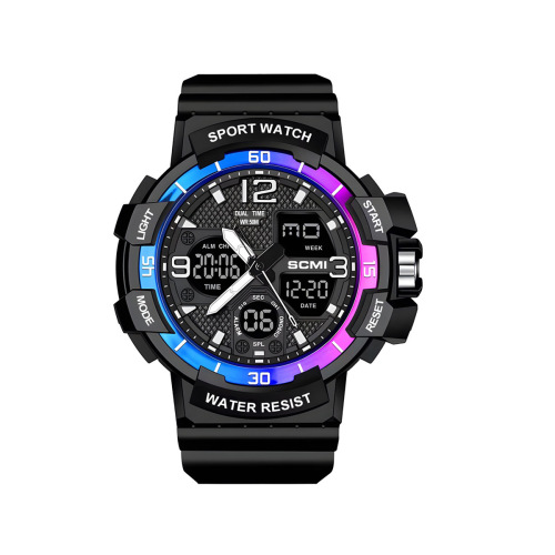 moment fan fashion casual electroplated men's waterproof watch double display multi-function sports outdoor electronic watch 中文版