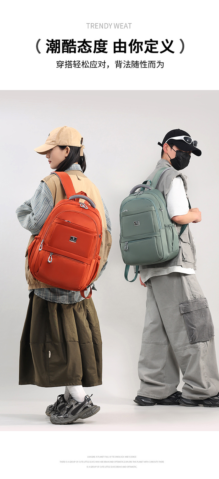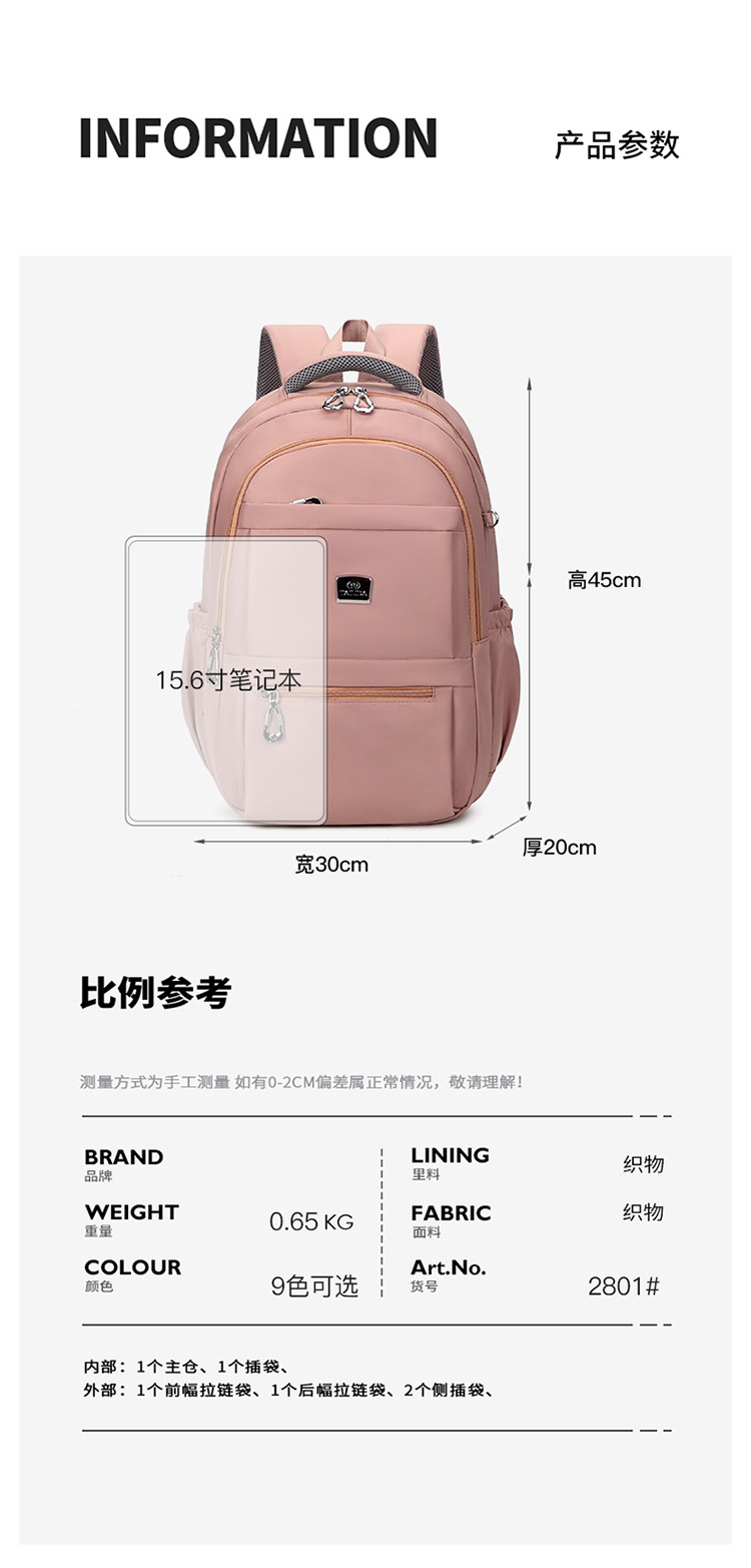 men's and women's large capacity backpack 2025 new simple and versatile nylon cloth travel bag lightweight multi-layer backpack 中文版